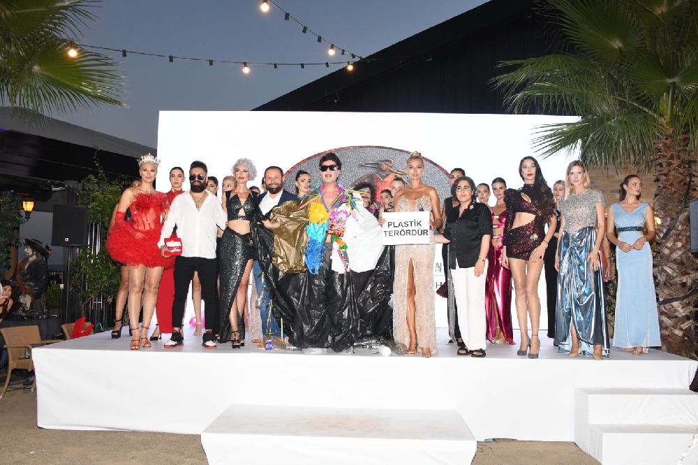 Defilede şarkıcı Yılmaz Morgül, çevre kirliliğine dikkat çekmek için ‘Plastik Terördür’ pankart kaldırarak çöpten yapılan Emrullah Köroğlu’nun tasarımını giydi. 3. kez anne olmaya hazırlanan oyuncu, 13 kilo aldığını belirterek, “Limonlu içecekleri aşerdim ve çok seviyorum. 13 kilo aldım çok az aslında hala manken kıyafetleri giyebiliyorum” diye konuştu. Elles, doğumunun her an olabileceğini sözlerine ekledi.