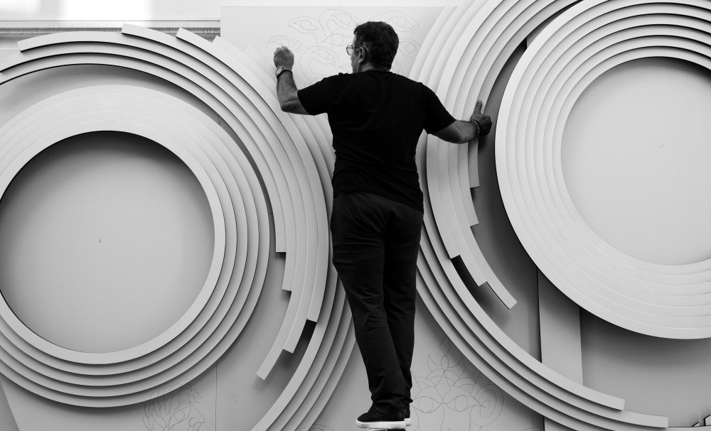 Galeri Güneştekin Vakfı’nın işbirliğiyle gerçekleştireceği açılış sergisinde sanatçının mitoloji anlayışını gösteren farklı disiplinlerden çalışmalarını bir araya getiriyor. Küratörlüğünü Şener Özmen’in üstlendiği sergide sanatçının zamansal ve uzamsal karmaşıklığı ifade eden heykelleri, yüzeye hareket yanılsaması verdiği boyutlu eserleri, yorumlayıcı bir strateji olarak mitosları kullandığı tuval işleri ve çoklu hikayelerin dokunsal deneyimlerle anlatılmasını sağladığı kırkyamaları sergileniyor.