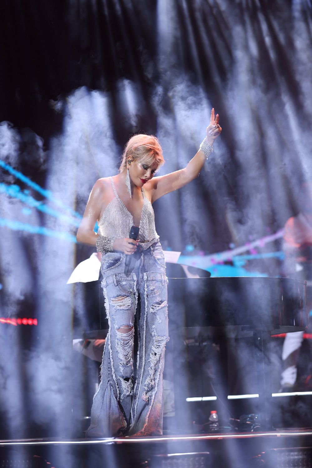 Konserde üç saatten fazla sahnede kalan Süperstar, Açıkhava’da adeta yıldız gibi parladı.
