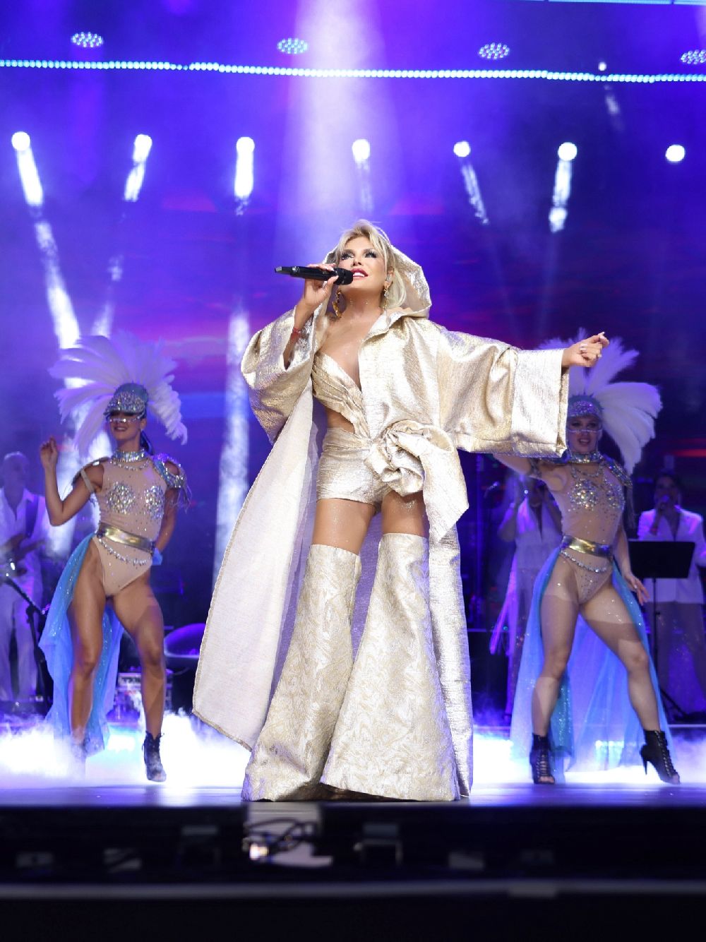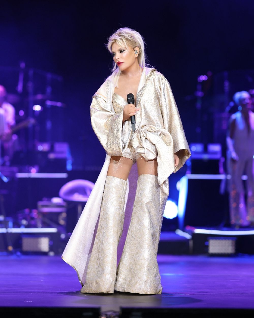 Harbiye Açıkhava’yı tıklım tıklım dolduran binlerce müzikseverin alkışları eşliğinde sahneye çıkan Süperstar Ajda Pekkan; sahnede performansı ile olduğu kadar dansları, sahne şovu ve Burcu Sedef imzalı kostümleri ile de göz kamaştırdı.