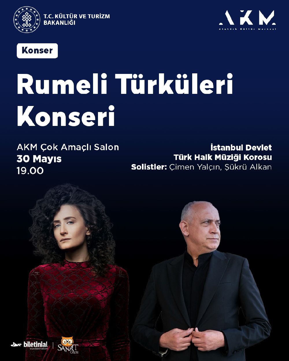 İstanbul Devlet Türk Halk Müziği Korosu, “Rumeli Türküleri” konseri 30 Mayıs'ta saat 19.00'da AKM Çok Amaçlı Salonda gerçekleşecek. Rumeli eyaleti, Osmanlı İmparatorluğu'nun sınırları içinde 500 yıldan fazla bir süre varlığını sürdürmüş ve önemli bir beylerbeyliğinden biri olmuştur. Günümüze ulaşan kültür mirasının büyük bir kısmı bu dönemde oluşturulmuştur. Rumeli türküleri, bölgedeki sanatçılar ve halk tarafından bestelenmiş türkü formundaki eserler solist Çimen Yalçın ve Şükrü Alkan tarafından icra edilecek.