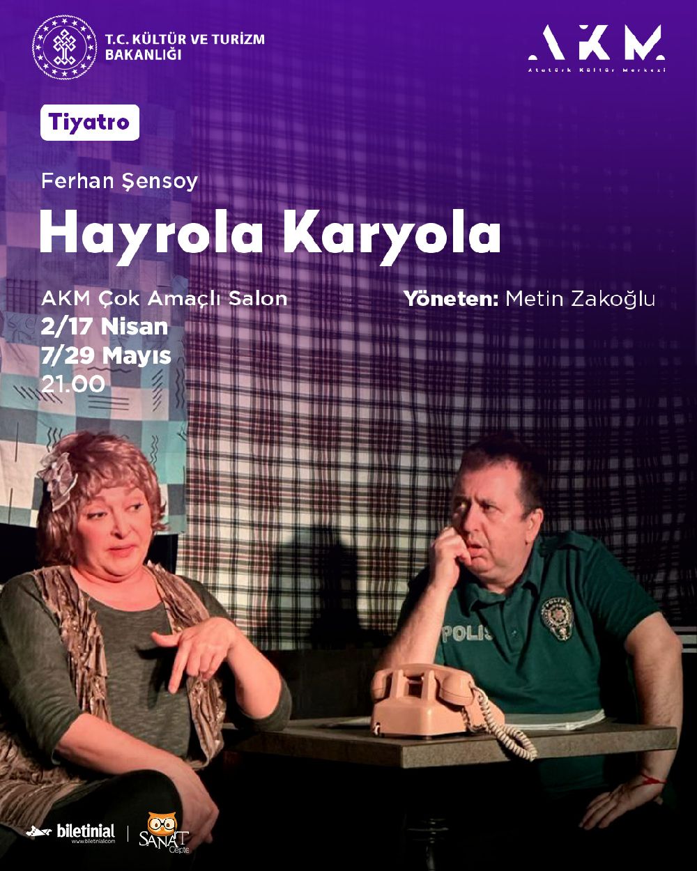 Usta yazar Ferhan Şensoy'un kaleme aldığı ve bir dönem Ortaoyuncular'da büyük ilgi gören “Hayrola Karyola” oyunu, 22 sene sonra yeniden sahneleniyor. Metin Zakoğlu'nun yönettiği ve başrollerinde Şebnem Köstem ile birlikte oynadığı oyun, AKM Çok Amaçlı Salonda 7 ve 29 Mayıs’ta saat 21:00’de seyirciyle buluşacak. Evli bir çift ile evlenmek üzere olan bir diğer çiftin komik maceralarını konu alan oyun, güncel ve ekonomik sorunları ele alıyor.