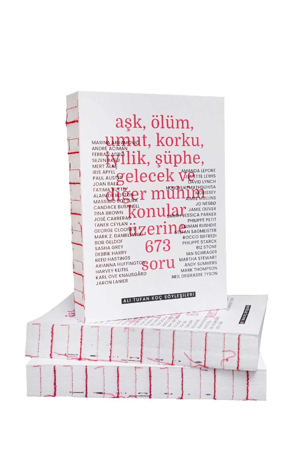 Aralık ayında Ofset Yayınları’ndan çıkan “Söyleşiler Kitabı: Aşk, Ölüm, Umut, Korku, İyilik, Şüphe, Gelecek ve Diğer Mühim Konular Üzerine 673 Soru”da yer alanlar arasında David Lynch, Martha Stewart, George Clooney, Paul Auster ve Massimo Bottura gibi dünyaca ünlü ikonik isimler var.