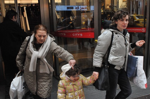 Üç kuşak bir arada olan aile, alışverişe çıktı.
