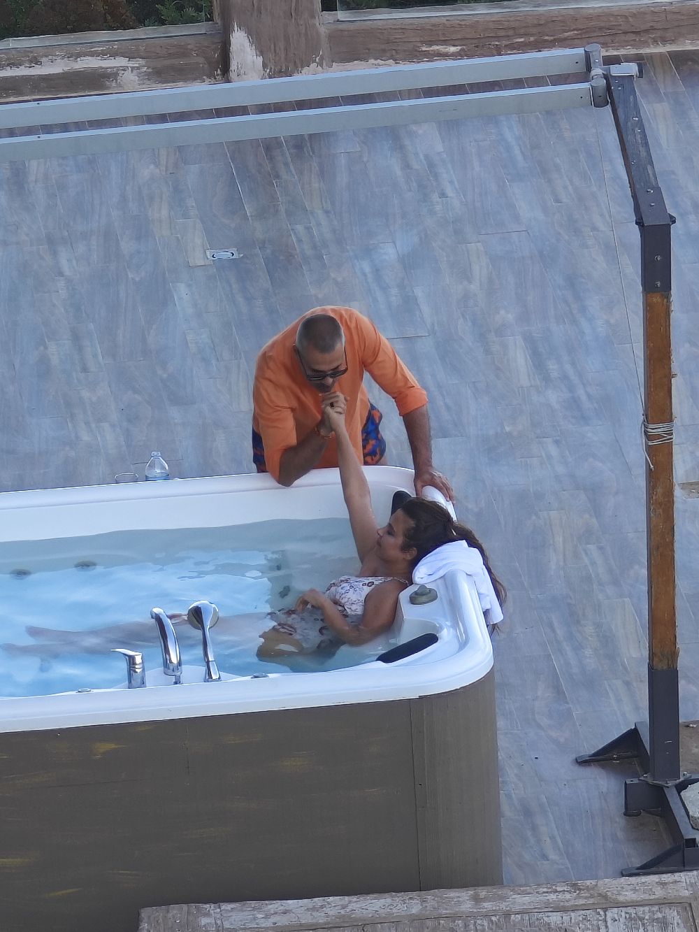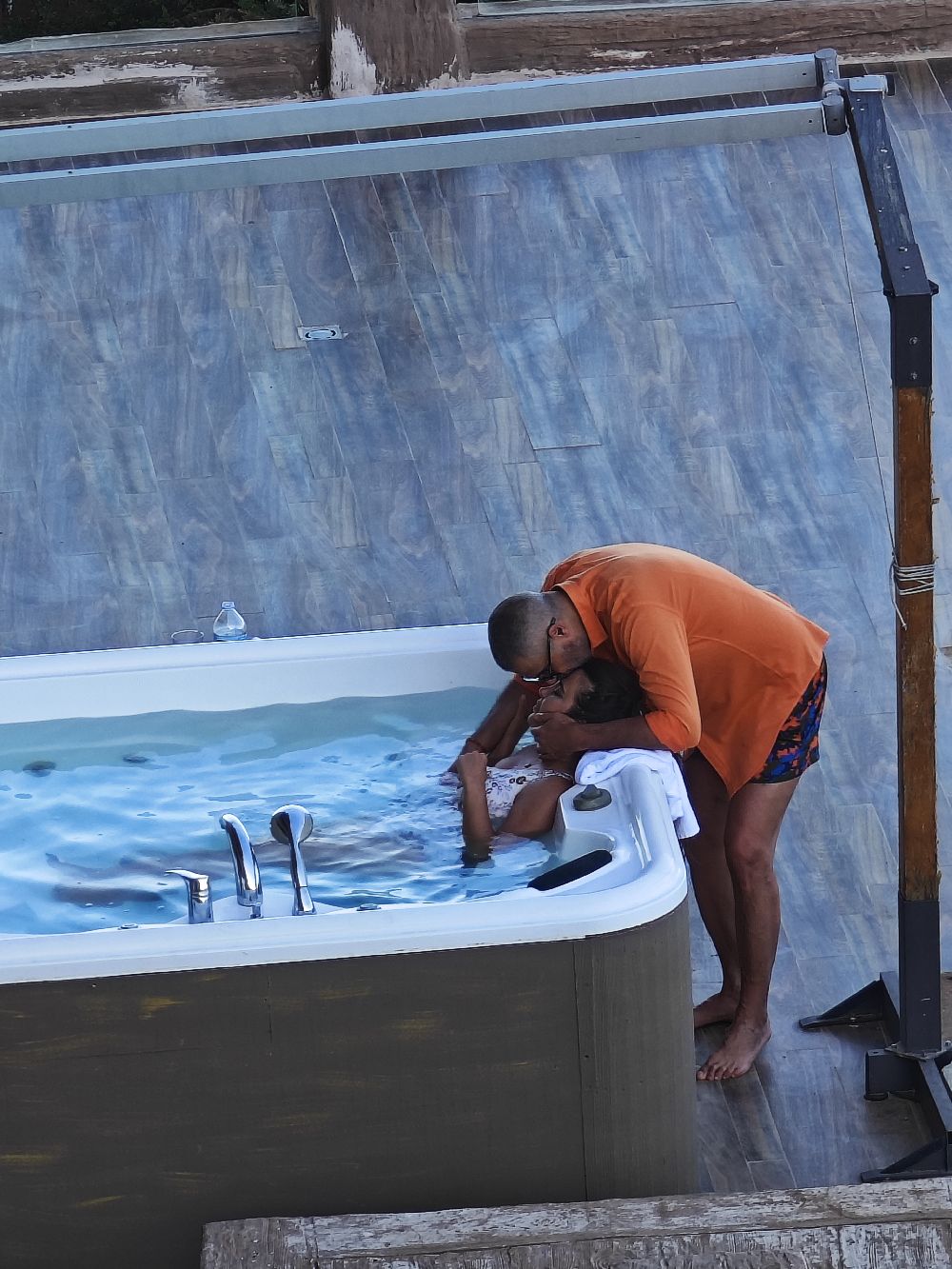 Şarkıcı, sahne öncesi eşi Savaş Yurtsever'le jakuzi keyfi yaptı.