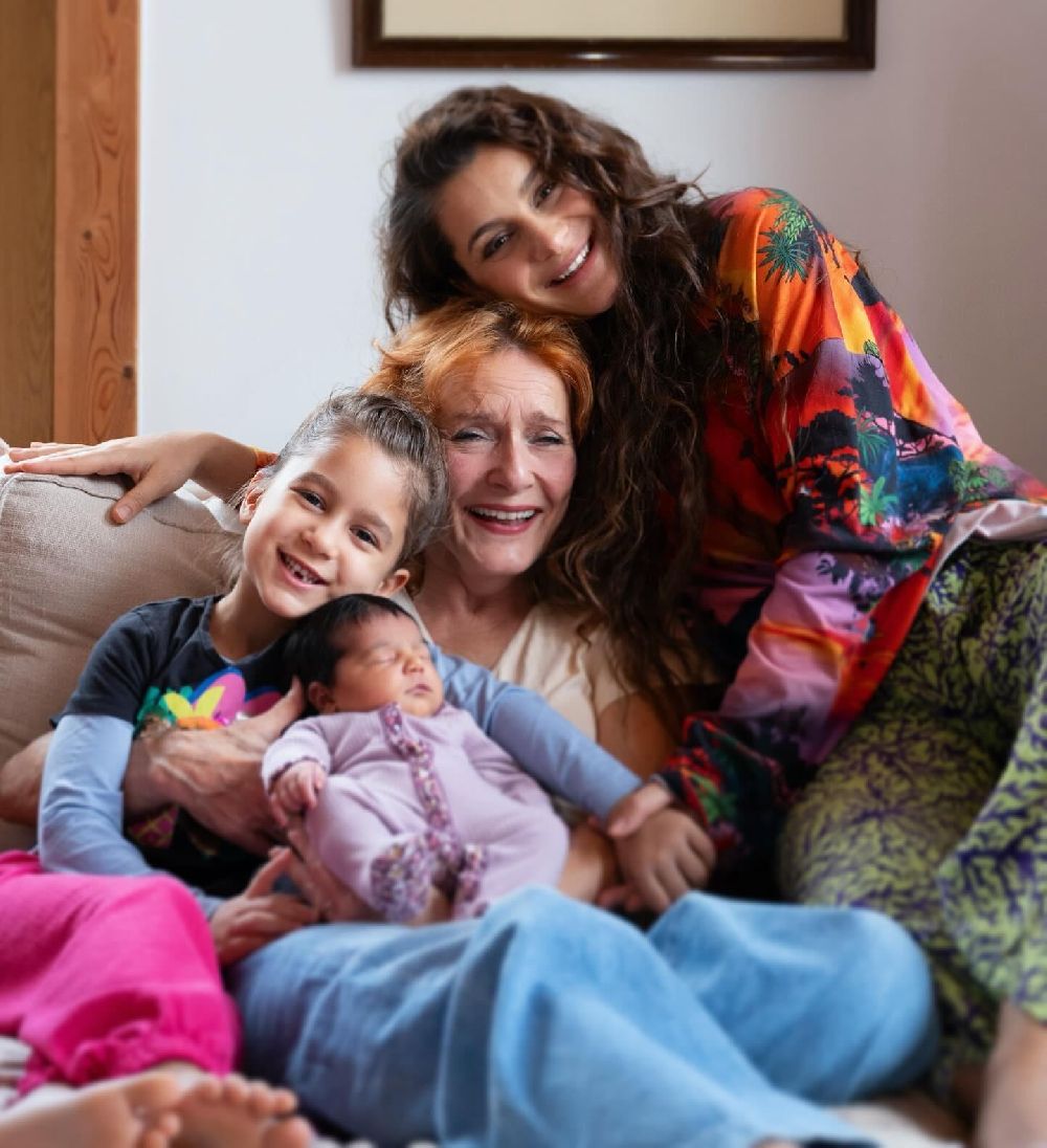 Atiye, sosyal medya hesaplarında Anneler Günü'ne özel olarak annesi Monique ve kızlarından Ferahfez ile Rumi'nin olduğu fotoğrafı paylaştı.