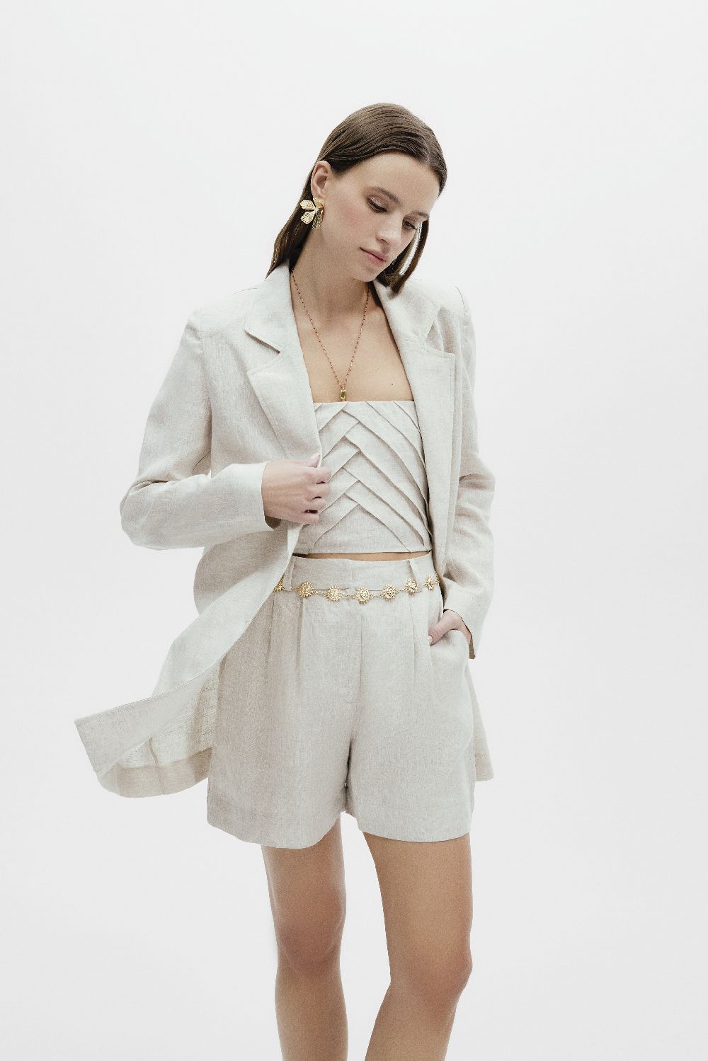 Bu sezonun öne çıkan trendlerinden ilhamla, “Denge” koleksiyonunda mavi, beyaz ve toprak tonlarındaki keten modeller dikkat çekiyor. Doğal dokusuyla teni saran ve yazın ferahlatıcı etkisini hissettiren keten kumaşlar, koleksiyonun zamansız duruşunu güçlendiriyor.