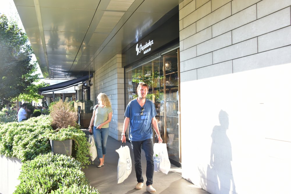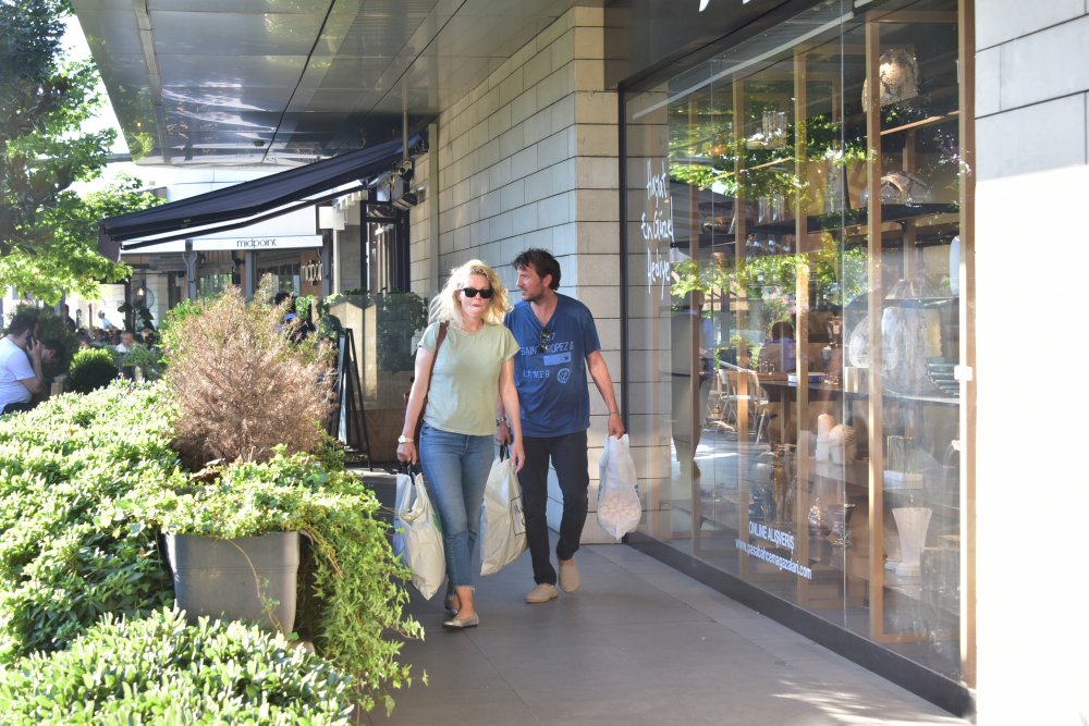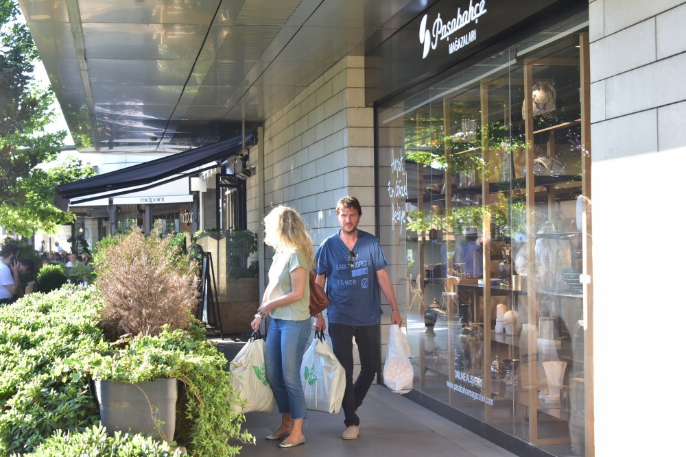 Akmerkez'de baş başa alışveriş yapan Alara Koçibey ve Eren Morova, poşetleri taşımakta zorlandı.