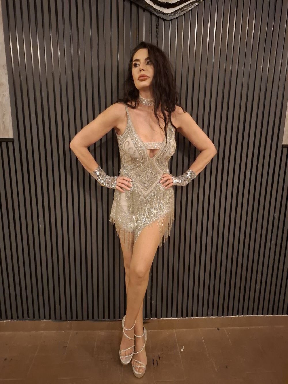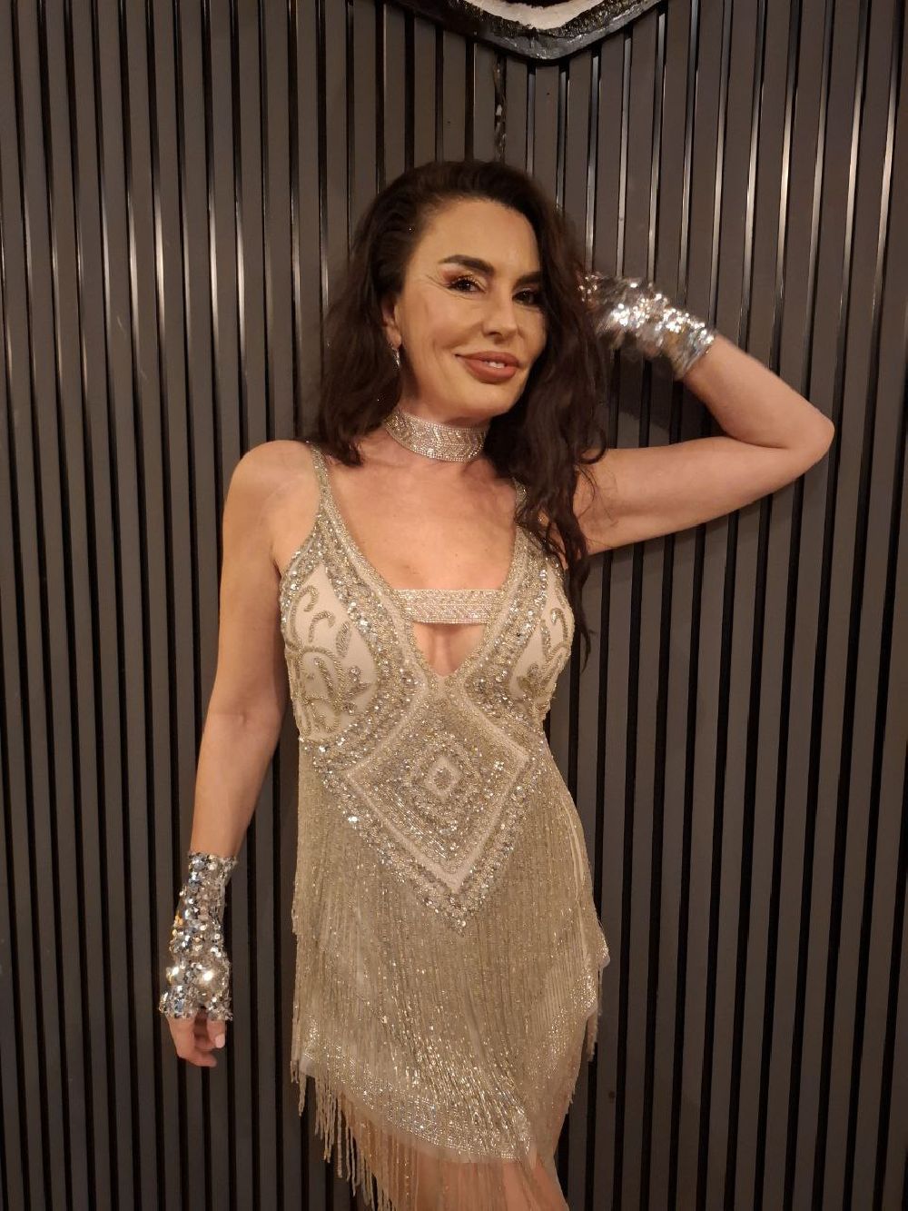 “10 numara eğleneceğiz!” diyerek sahnesine başlayan Aysu Baçeoğlu, gümüş payetli elbisesiyle göz kamaştırdı. Şıklığıyla dikkat çeken sanatçı, sahne kostümüyle ilgili esprili bir açıklama yaptı: