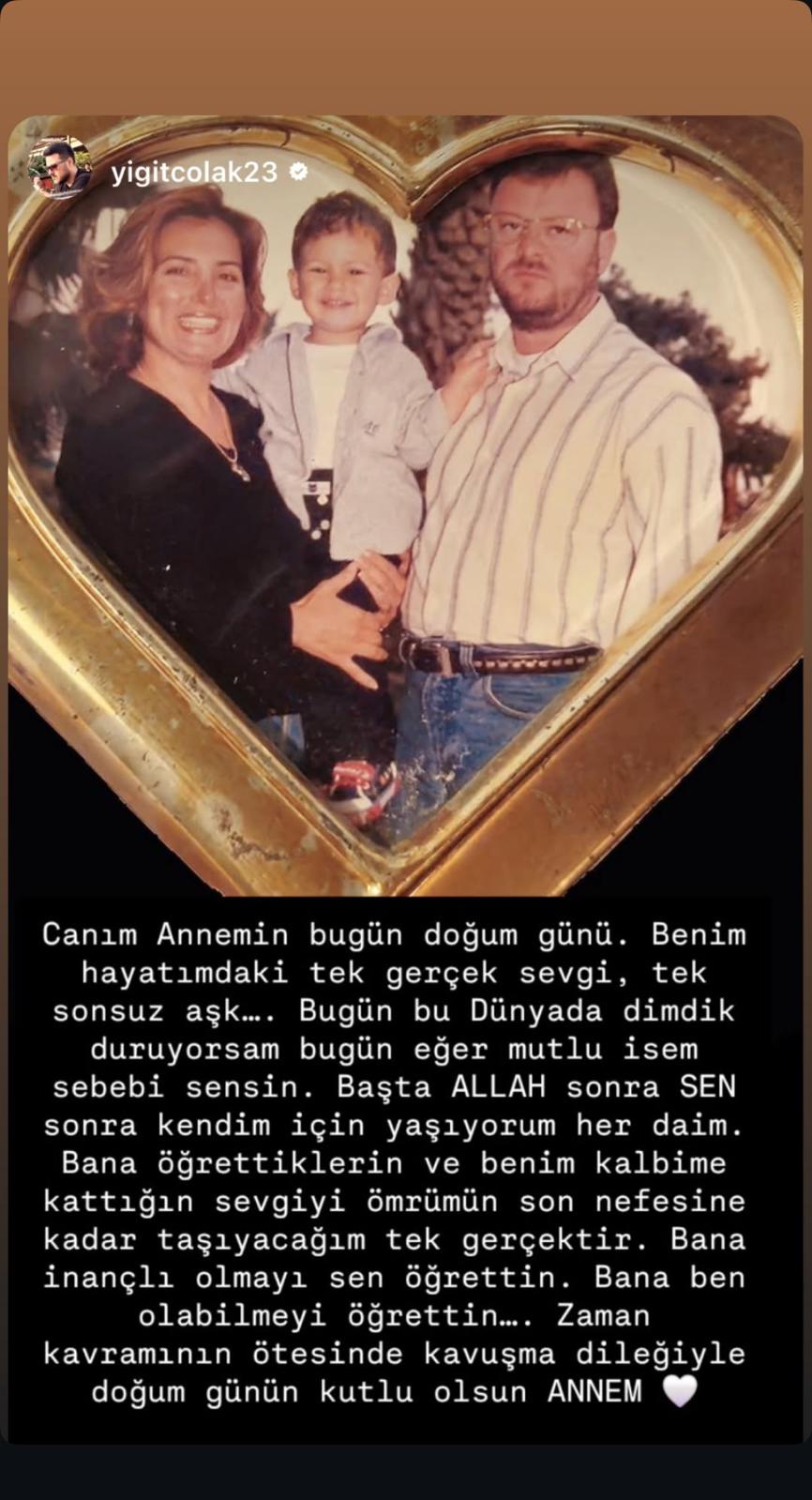 21 Mart 2024'te hayatını kaybeden Bahar Öztan'ın oğlu Yiğit Çolak, annesinin doğum gününde duygusal paylaşım yaptı.