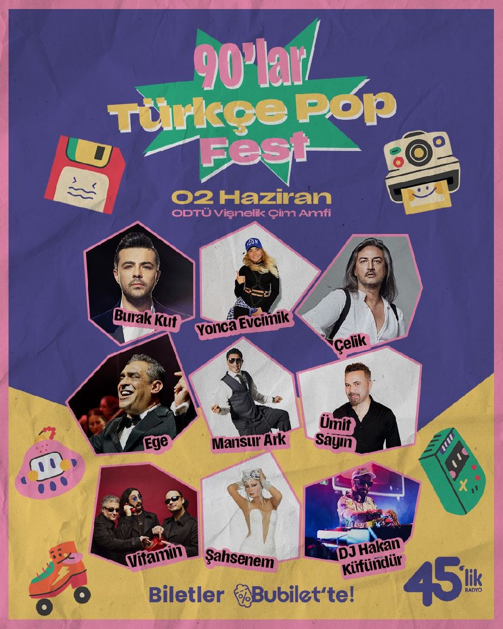 2 Haziran'da ODTÜ Vişnelik Çim Amfi'de "90'lar Türkçe Pop Fest"te unutulmaz bir nostaljik zaman yolculuğu deneyimi müzik severleri bekliyor. Etkinliğin biletleri Biletix ve Bubilette...