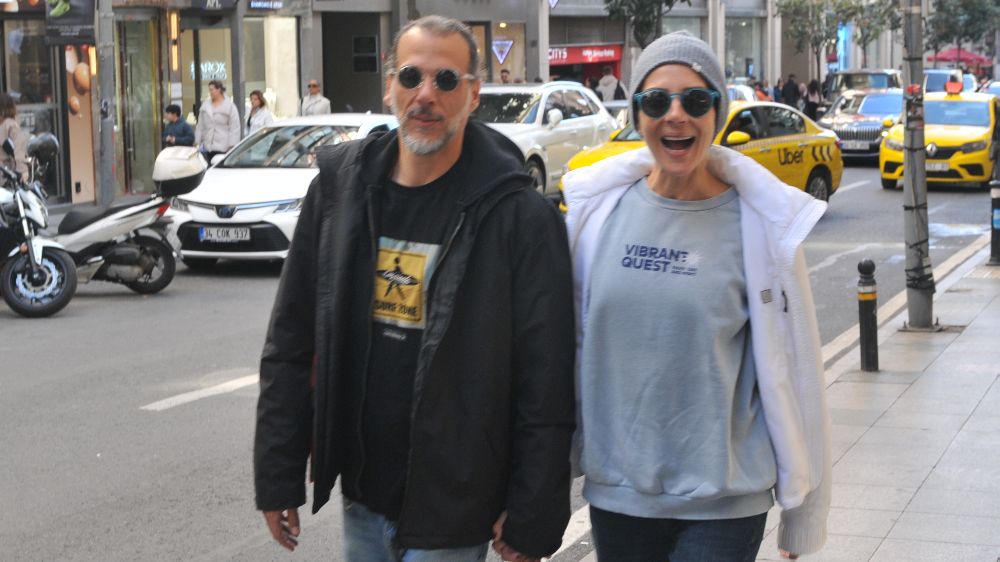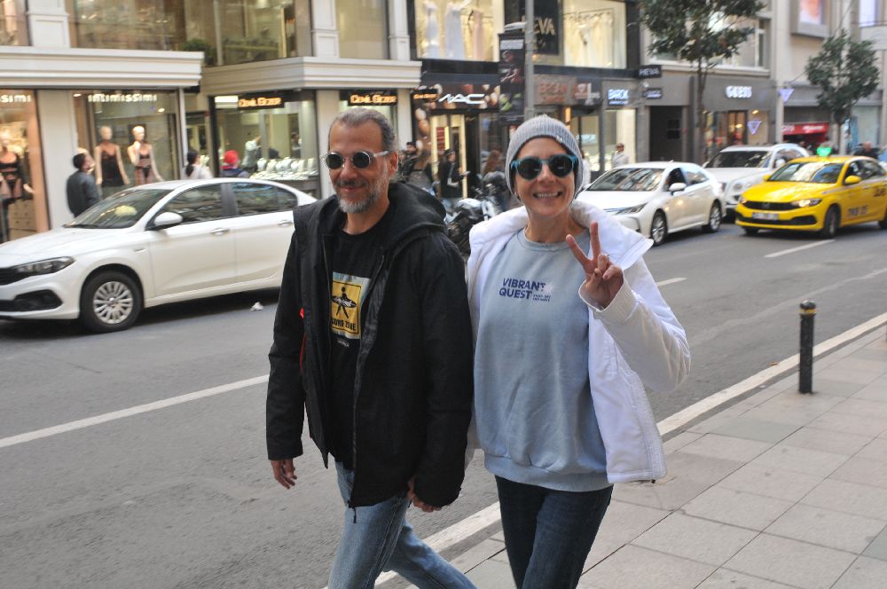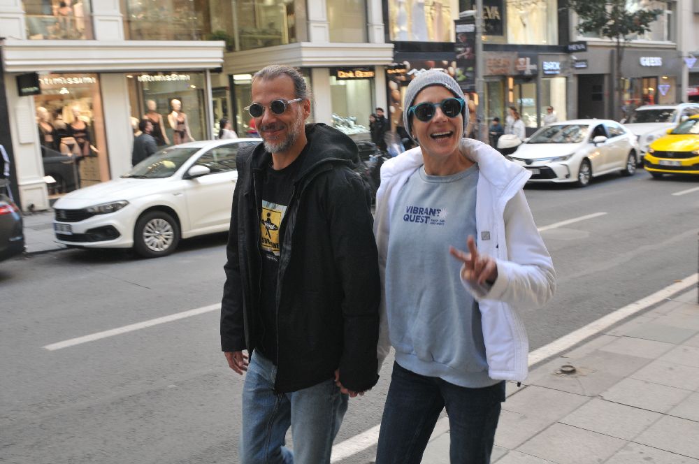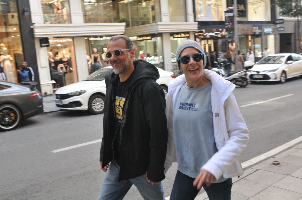 Neşeli olduğu görülen sevgililer, Nişantaşı turu yaptı.
