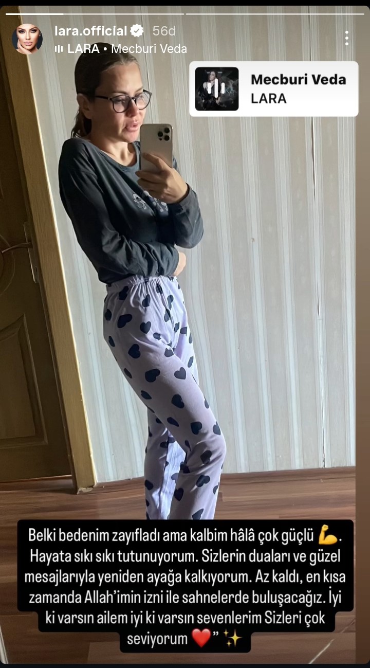 Lara, "Belki bedenin zafıyladı ama kalbim hala güçlü. Hayata sıkı sıkı tutunuyorum" dedi.