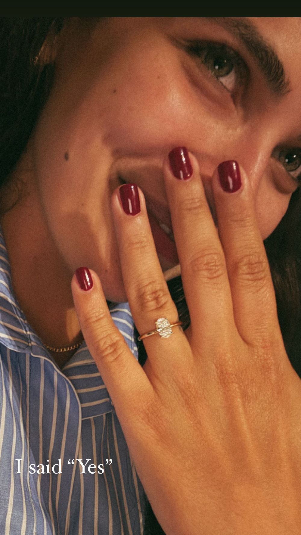 1.5 yıldır Almanya’da bir kahve zincirinin sahibi olan Abdurrahman Aydın ile aşk yaşayan oyuncu, yaşadığı mutluluğu sosyal medyadan paylaştı ve yüzüğünün fotoğrafını “Evet dedim” mesajıyla yayınladı.