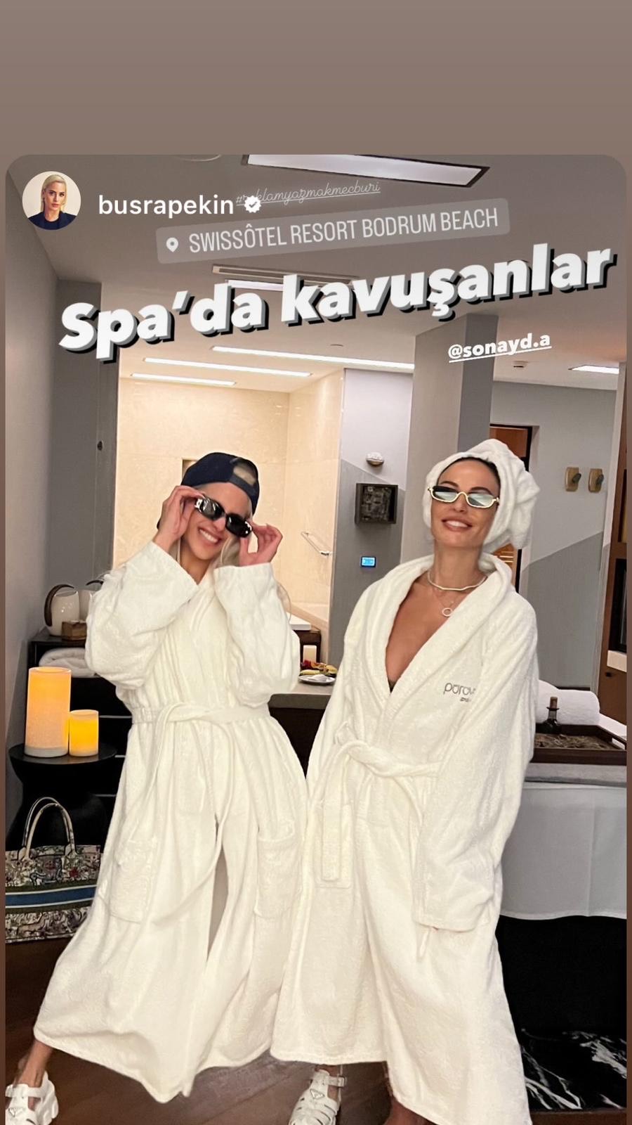 Gün boyu güneş ve denizin keyfini çıkaran arkadaşlar, daha sonra SPA keyfi yaptı. Fit vücutlarıyla dikkat çeken Dut ve Pekin, SPA'daki eğlenceli anlarını sosyal medya hesaplarından paylaştı.