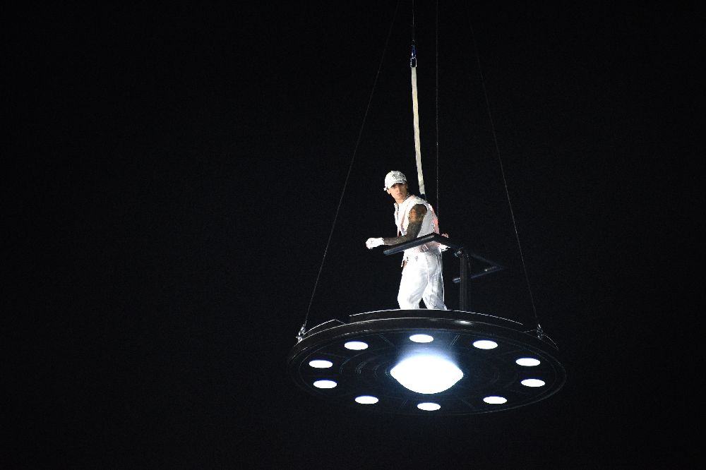 Röportajın ardından büyük çığlıklar ve tezahüratlar eşliğinde sahneye çıkan Çakal, UFO görünümlü özel tasarlanmış vinçle gökyüzünden süzülerek konser alanına indi.