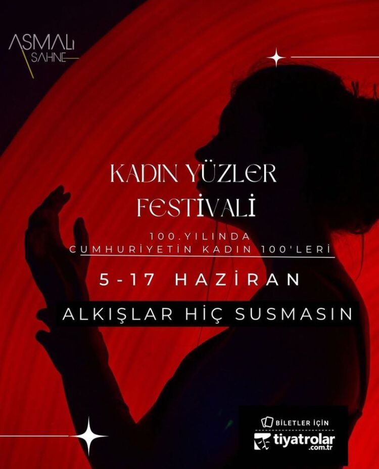 Asmalı Sahne’de gerçekleştirilecek Kadın Yüzler Festivali, “Alkışlar Hiç Susmasın” sloganıyla cumhuriyetin en önemli kazanımlarından olan “Kadınların sahneye çıkabilme” özgürlüklerine atıfta bulunmak amacıyla 100. yılda genç kadın oyuncuların ve tiyatro ekiplerinin seyirci ile buluşmasını hedefliyor.