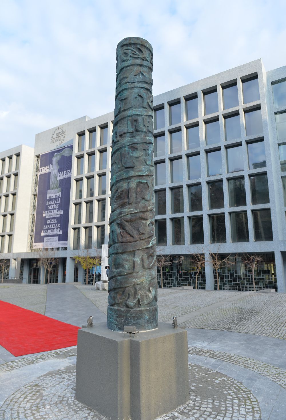 QNB Finansbank ve Mimar Sinan Güzel Sanatlar Üniversitesi iş birliği ile kamu ile yeniden buluşturulan ve Roma döneminde zafer ve komutanların anması için üretilen sütunlardan esinlenerek oluşturulan 100. yıl heykeli, MSGSÜ İstanbul Resim ve Heykel Müzesi’nin önünde ziyaretçilerini bekliyor.