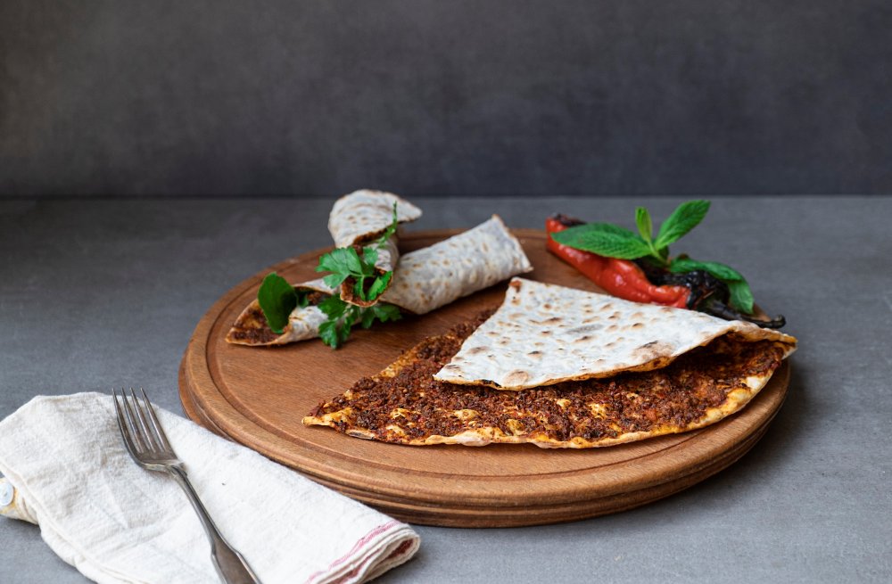 Bilindiği üzere, lahmacun Şanlıurfa’ya ait bir kültürdür. İncecik açılmış hamurun üzerine döşeme denilen yöntemle bol bol koyulan kıymalı harçta sadece kıyma, soğan ve Şanlıurfa’nın isot biberi yer alır.