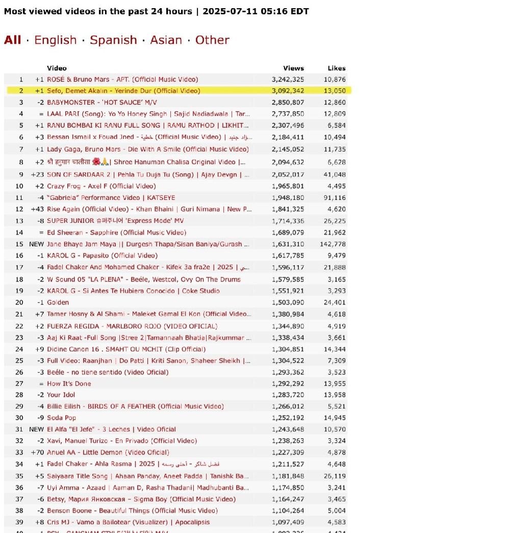 Türk pop müziğinin güçlü sesi Demet Akalın ile rap dünyasının sevilen ismi Sefo’nun enerjik düeti “Yerinde Dur”, Türkiye sınırlarını aşarak dünya çapında bir başarı yakaladı.