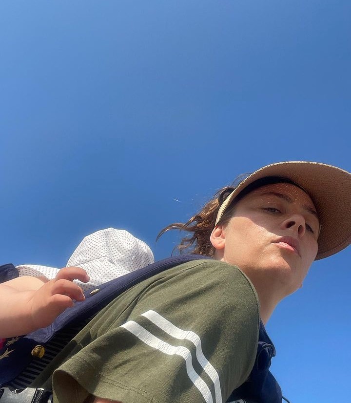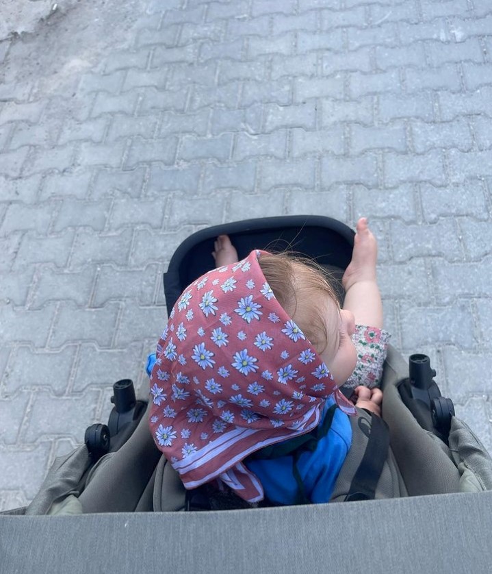 Oyuncu, bir yaşındaki kızı Mavi ile yürüyüşe çıktı.