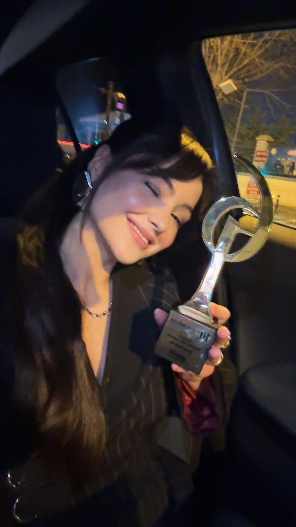 Üniversitelerin en çok davet edilen isimlerinden biri haline gelen genç oyuncu, ödül töreni sonrasında arabasında ödülüyle verdiği mutluluk pozuyla sosyal medyada büyük ilgi gördü ve beğeni yağmuruna tutuldu.