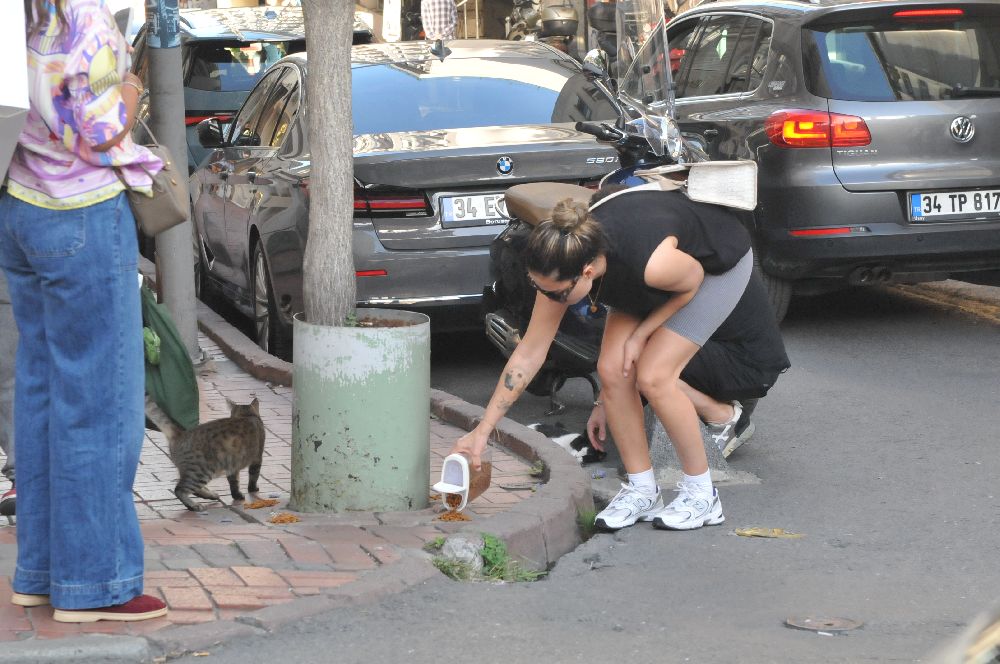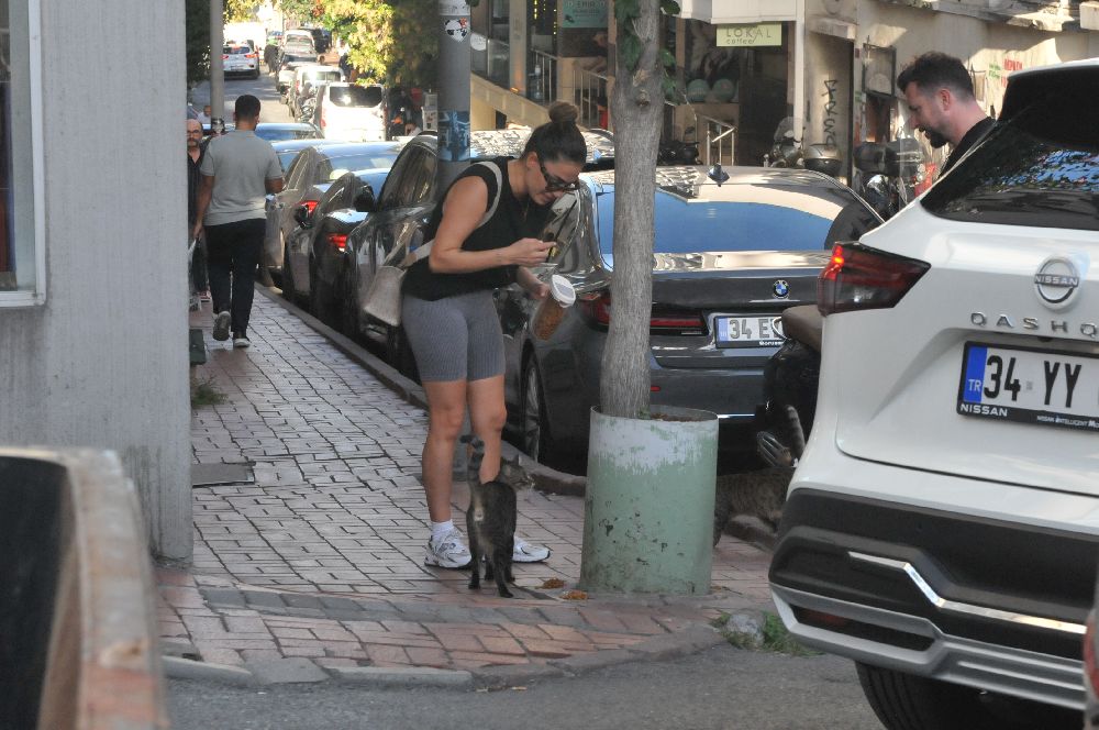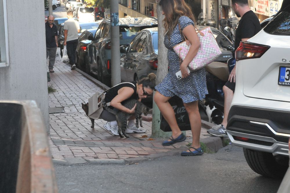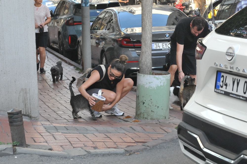 Şarkıcı, eşi Levent Dörter'le Nişantaşı'nda gezdiği sırada, sokak hayvanları için mama dağıtırken görüntülendi.