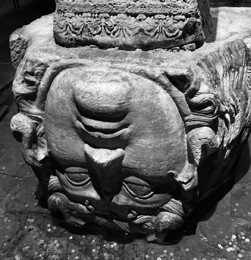 Model, Yerebatan Sarnıcı’nı ziyaret ederek Medusa heykelinin önünde verdi.
