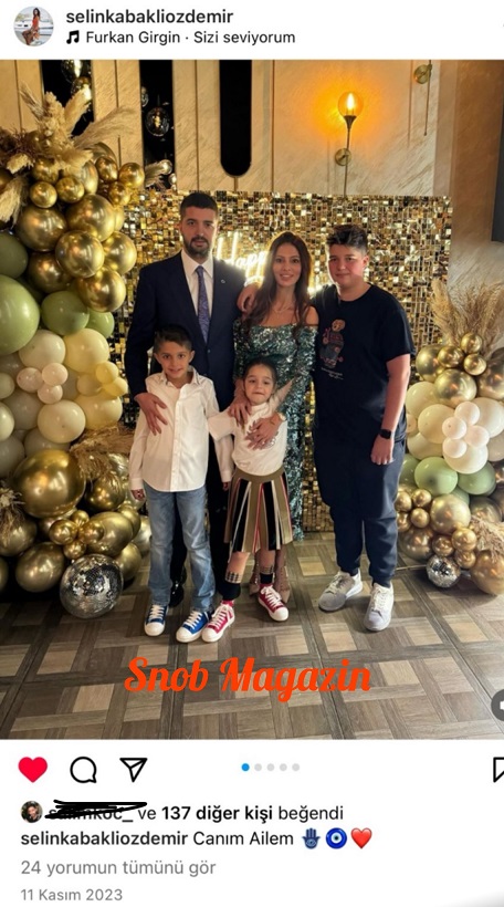 Selin Kabaklı, 11 Kasım 2023'te doğum günü kutlamasına eşi ve çocuklarıyla olan fotoğrafını paylaşıp, "Canım ailem" notunu düştüğü görüldü.