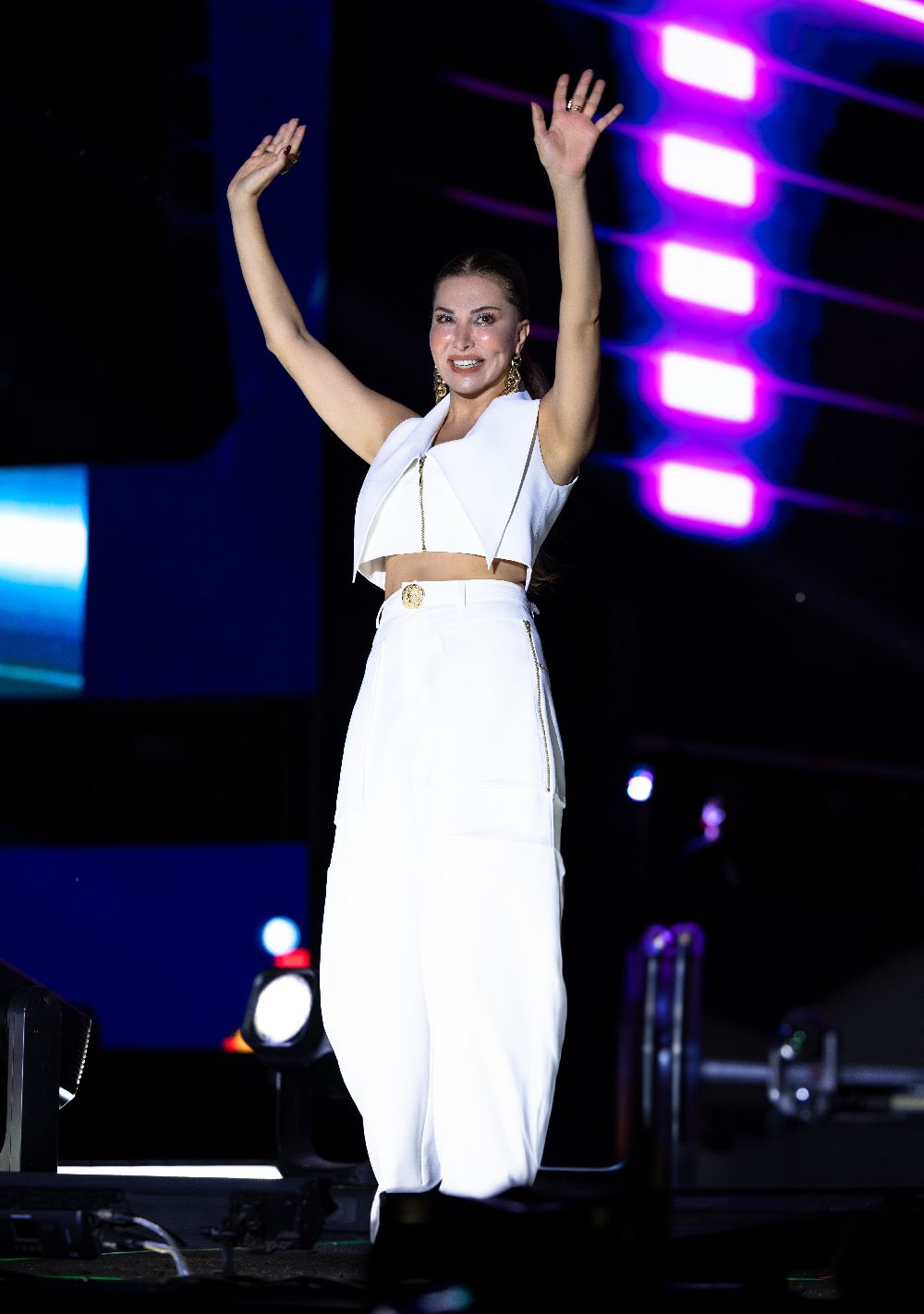 100 bin kişinin katılımıyla festivalin rekoruna ve kapanışına imza atan Ebru Yaşar, beyaz sahne kıyafetiyle çok şıktı.