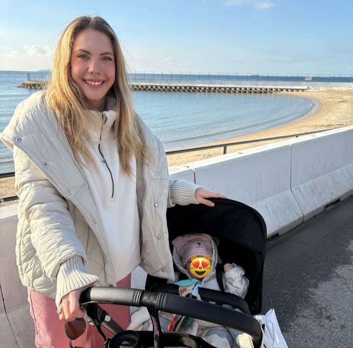 Eda Ece, kızı Mina İpek ile yürüyüşe çıktı. 2023 yılında basketbolcu Buğrahan Tuncer ile evlenen oyuncu, bebeğinin yüzünü yine gizledi.