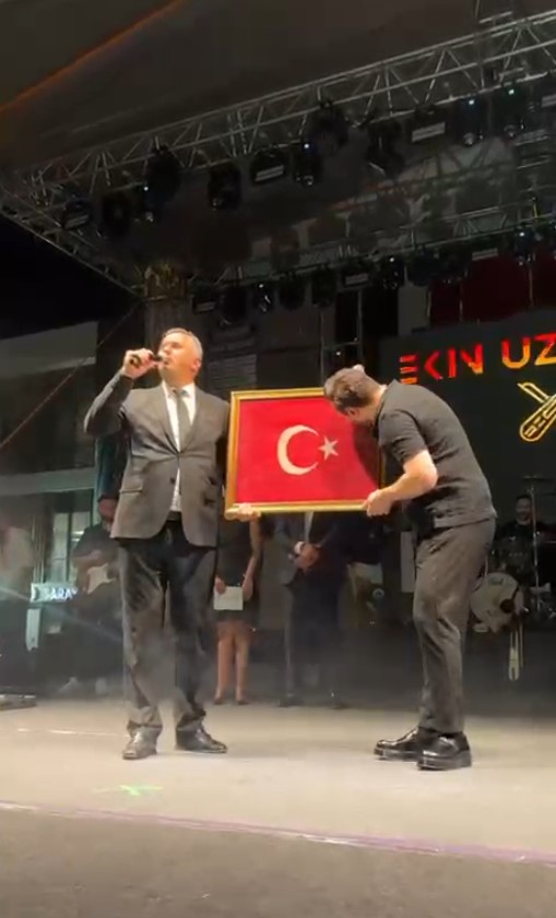 İki saat boyunca sahnede kalan Ekin Uzunlar’a Saray Belediye Başkanı Abdül Taşyasan tarafından plaket ve Türk bayrağı hediye edildi. Türk bayrağını öperek alan Uzunlar, alandakiler tarafından büyük alkış topladı.