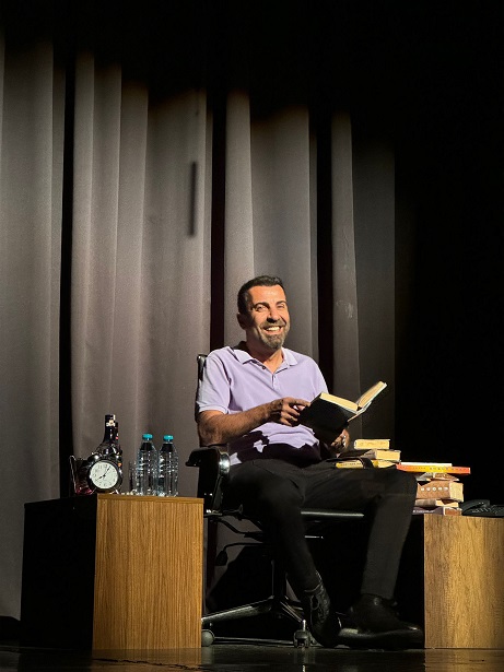 'Erkek Aklı' adlı tiyatro oyunu için alışveriş merkezine gelen Karayel, tek kişilik sahne performansıyla izleyicilerden tam not aldı.