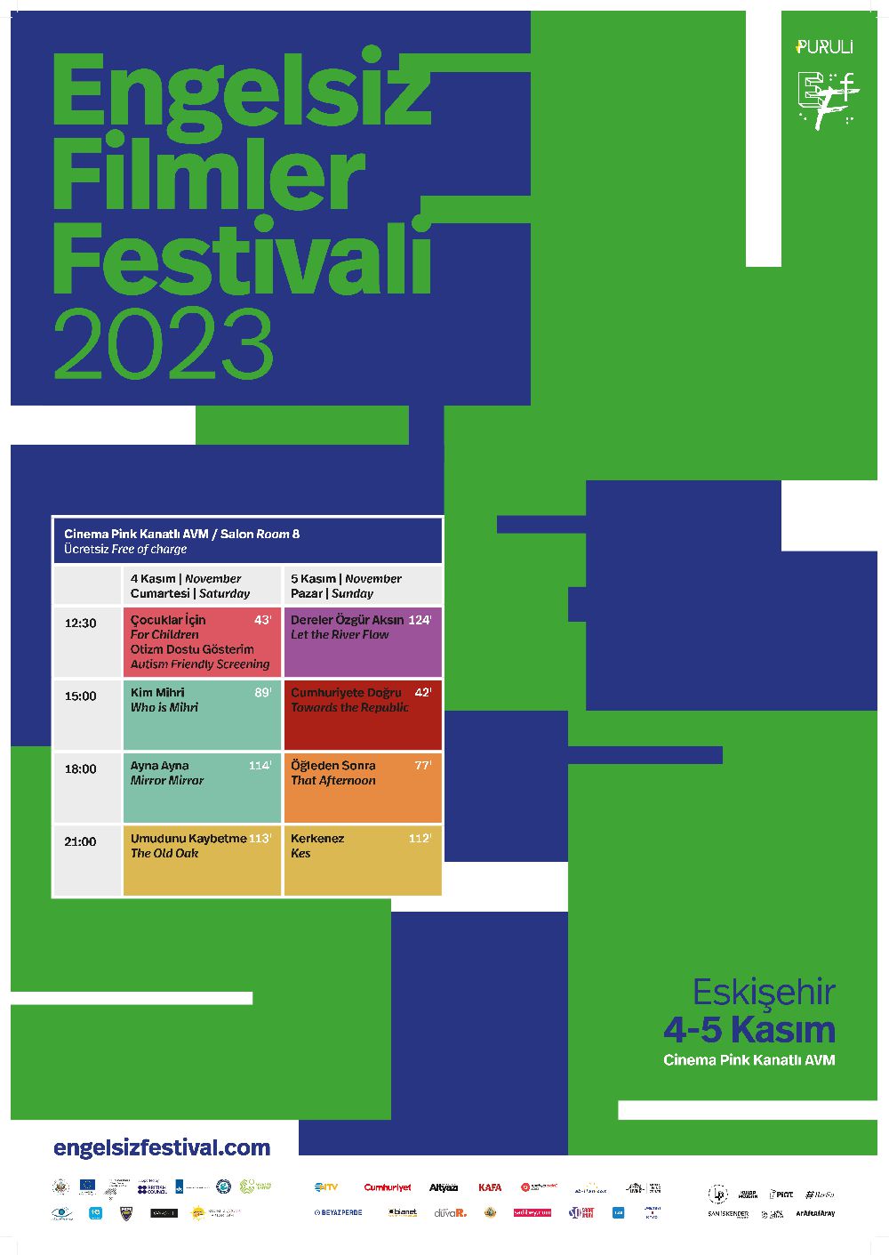 Festival programında yer alan tüm gösterimler, sesli betimleme ve ayrıntılı altyazı ile ücretsiz olarak izlenebilecek. Yer numaraları gösterimlerden iki saat önce Cinema Pink Kanatlı AVM’deki festival standından alınabilecek. Kim Mihri filminin gösteriminin ardından yapılacak ve filmin yönetmeni Berna Gençalp’in katılacağı söyleşide işaret dili tercümesi yapılacak. Çocuklar İçin bölümü dışındaki tüm gösterimler İngilizce olarak da takip edilebilecek.