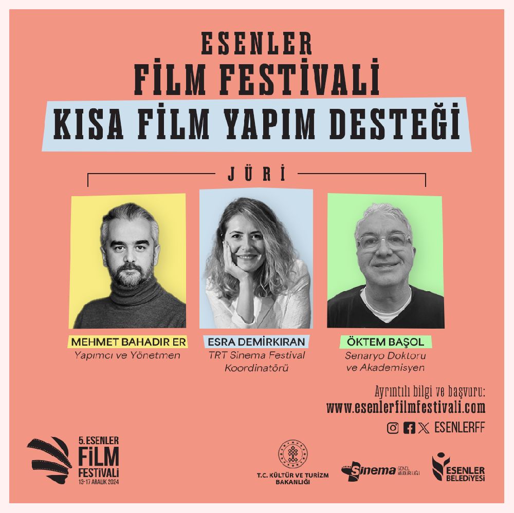 Esenler Film Festivali’nin kısa film projelerine nakdî ve aynî destek sağladığı ‘Kısa Film Yapım Destek”bölümünün jürisinde bu yıl; çektiği filmler ile dünyanın çeşitli saygın film festivallerinin yanı sıra Türkiye’de Antalya Altın Portakal, Adana Altın Koza, Ankara Film Festivali gibi yurtiçi festivallerden önemli ödüller alan yönetmen Mehmet Bahadır Er, Türkiye’nin en büyük senaryo danışmanlığı ve ortak yapım platformu TRT 12 Punto’nun koordinatörlerinden, TRT Sinema Festival Koordinatörü Esra Demirkıran ve Türk sinema ve televizyon sektörünün önde gelen senaryo doktorlarından, senarist ve akademisyen Öktem Başol yer alacak.
