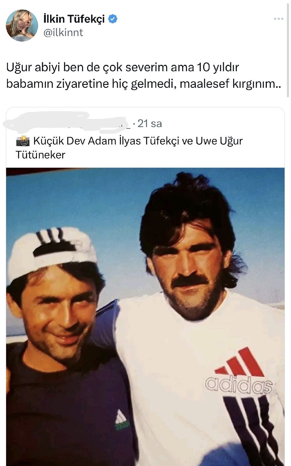 Kareyi alıntılayan Tüfekçi'nin oyuncu kızı İlkin Tüfekçi, "Uğur abiyi ben de çok severim ama