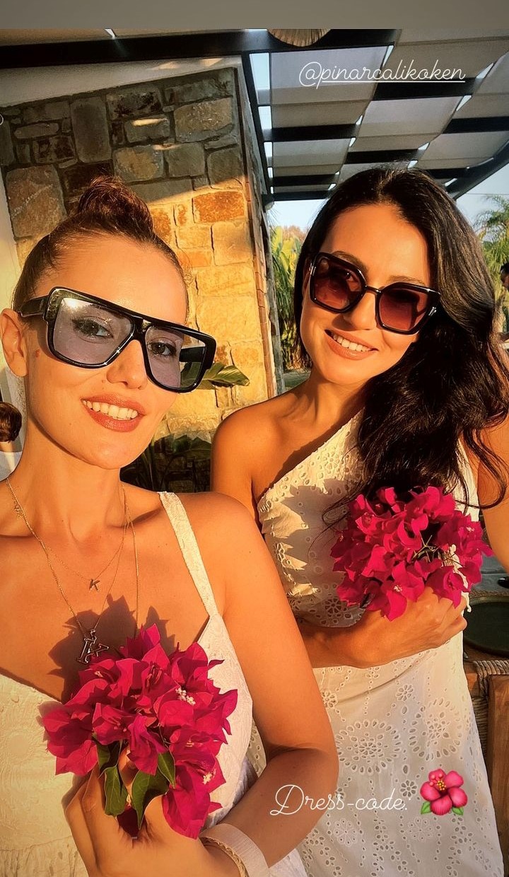 Burak Özçivit ile evli olan oyuncu, Karan ve Kerem adındaki iki oğlunun baş harflerinin olduğu K harfini kolye yaptığı görüldü.