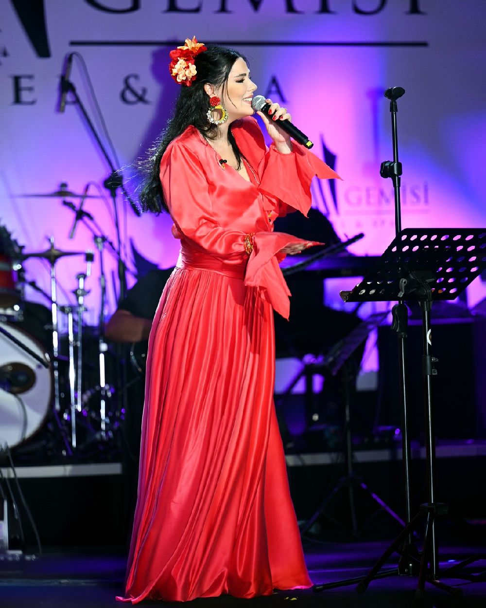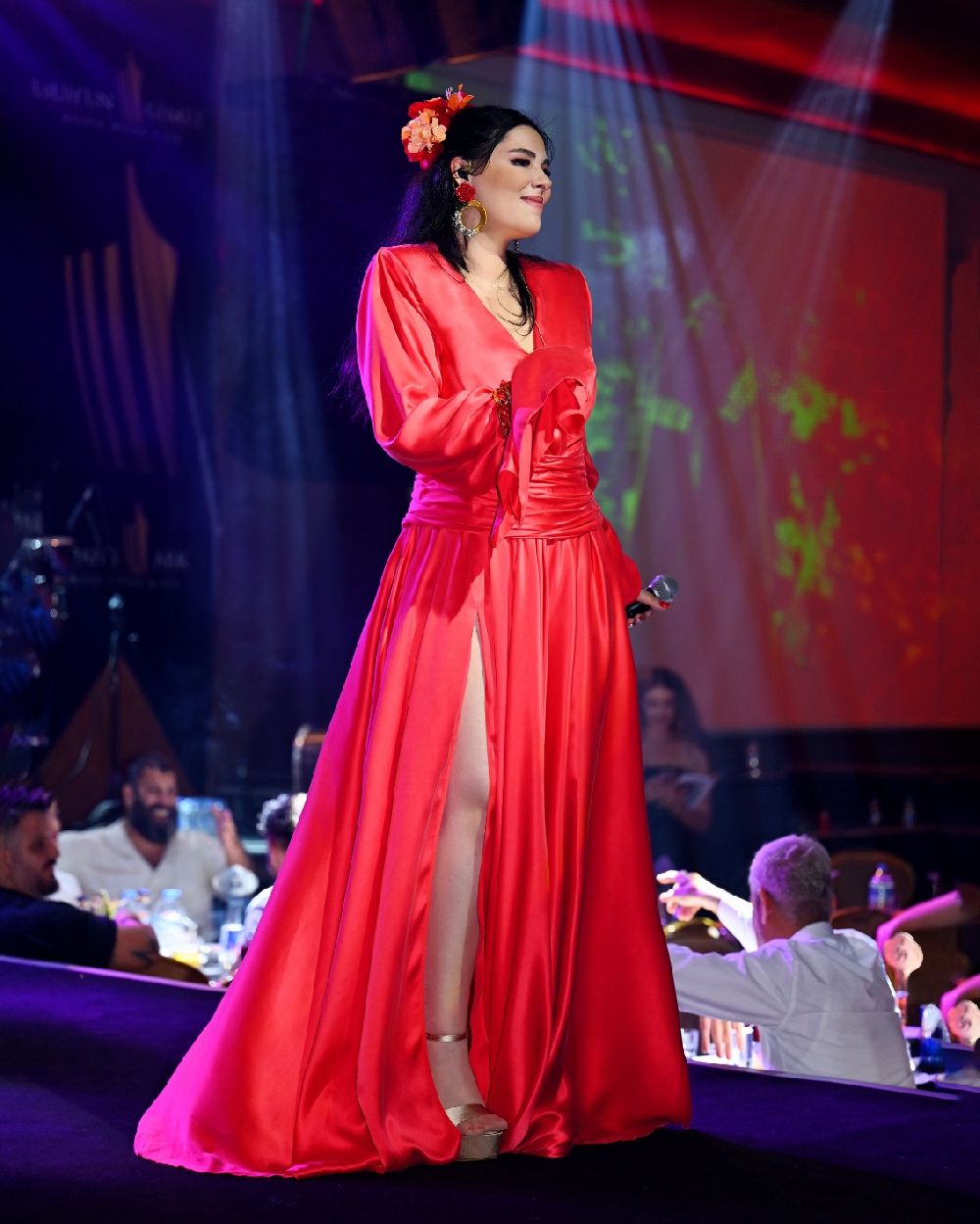 Modacı Burcu Sedef’in hazırladığı kırmızı kıyafetiyle şarkılarını seslendiren Tayfur, sahnede yaklaşık iki saat kaldı.