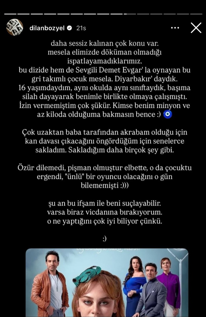 Dilan Bozyel, 16 yaşındayken aynı okulda okuduğu Ak'ın başına silah dayayarak zorla birlikte olmaya çalıştığını öne sürdü.