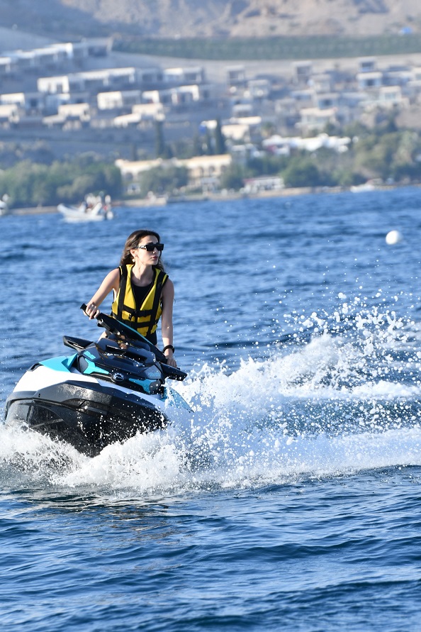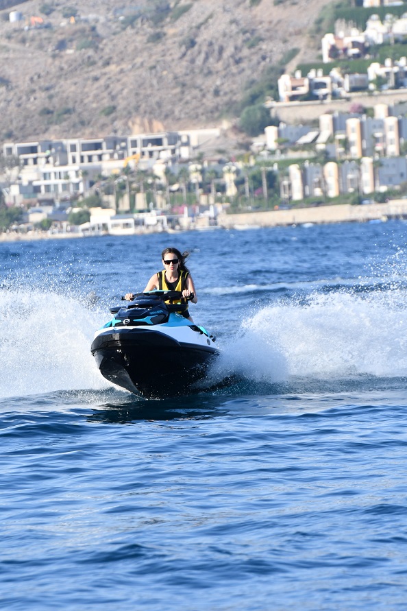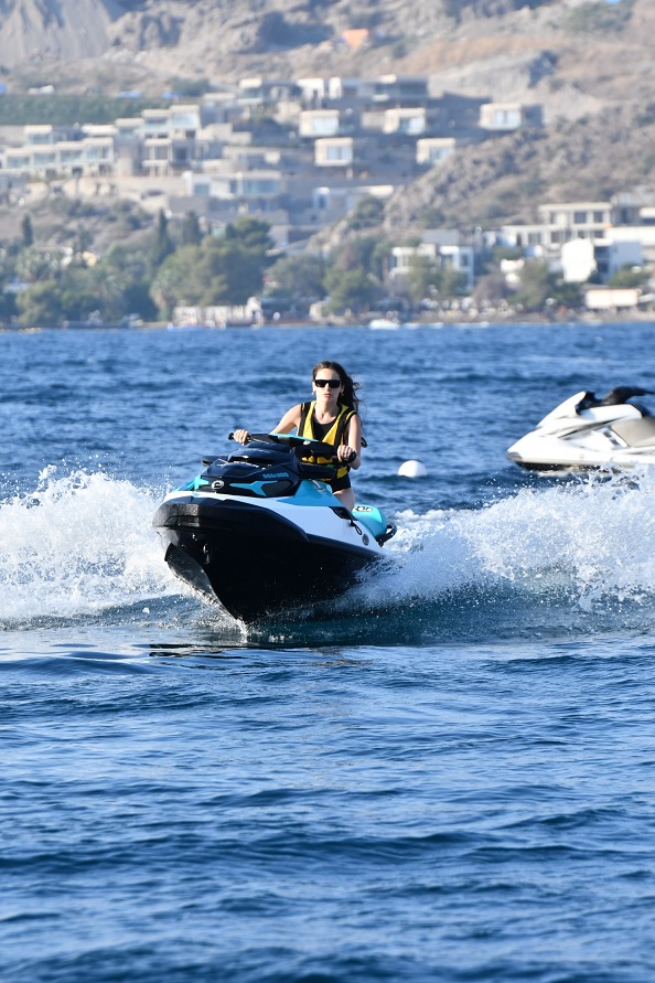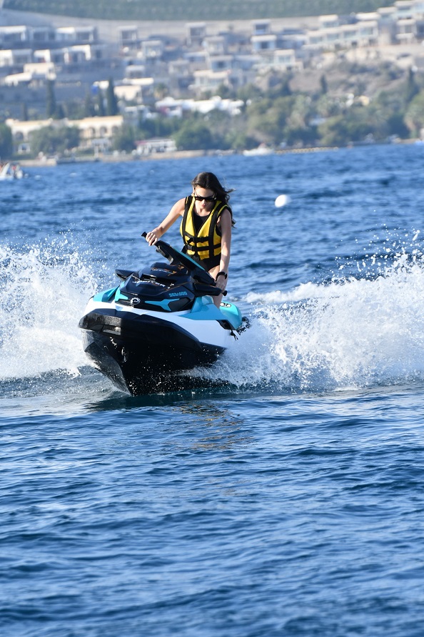 Oyunculukta başarısını denizde de sergileyen Yağmur Tanrısevsin, jet-ski ile denizde dakikalarca anın keyfini çıkardı.