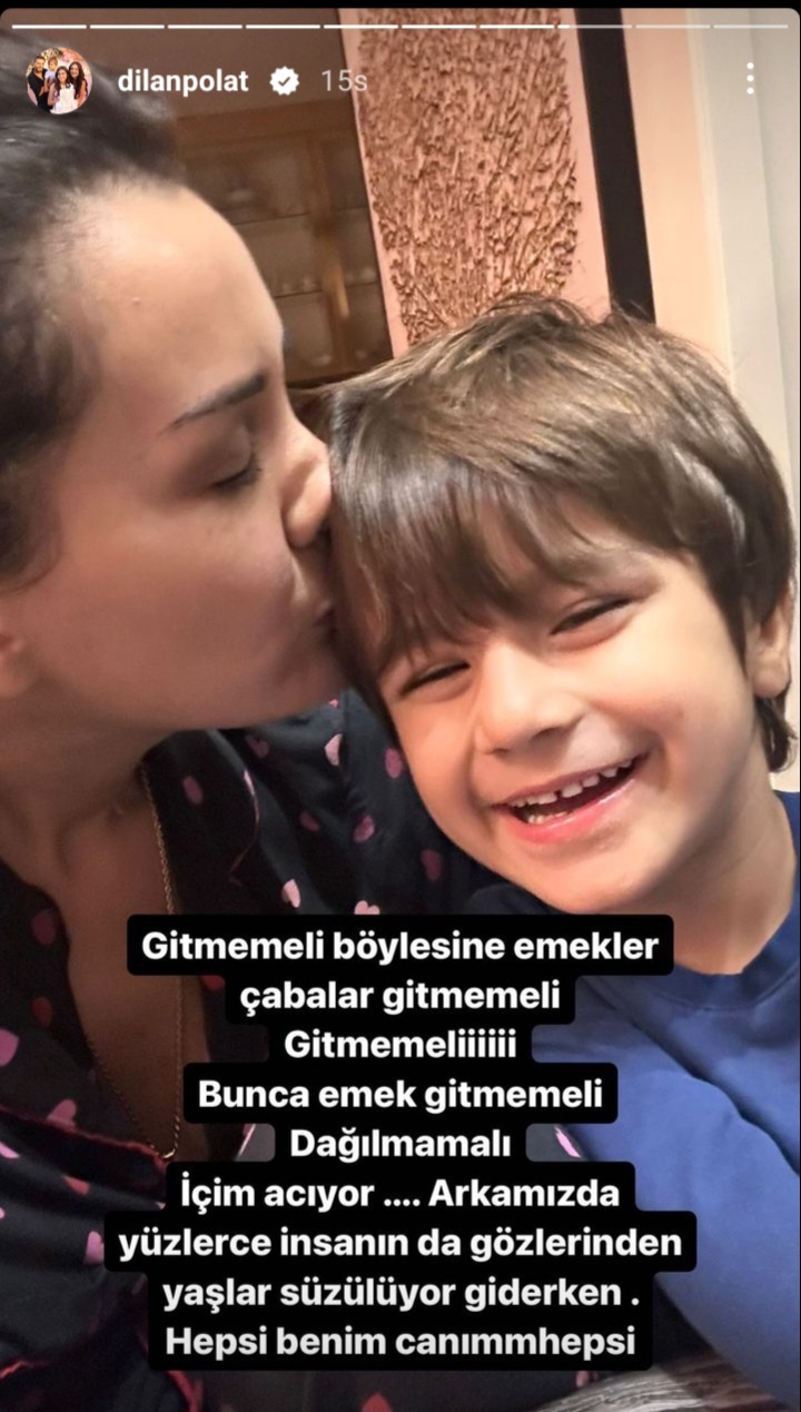 Dilan Polat’ın paylaşımda, çocuğuna sarılıp ağladığı fotoğrafa ‘Vedalar ancak güzel yürekleri acıtır’ isimli şarkıyı eklediği görüldü.