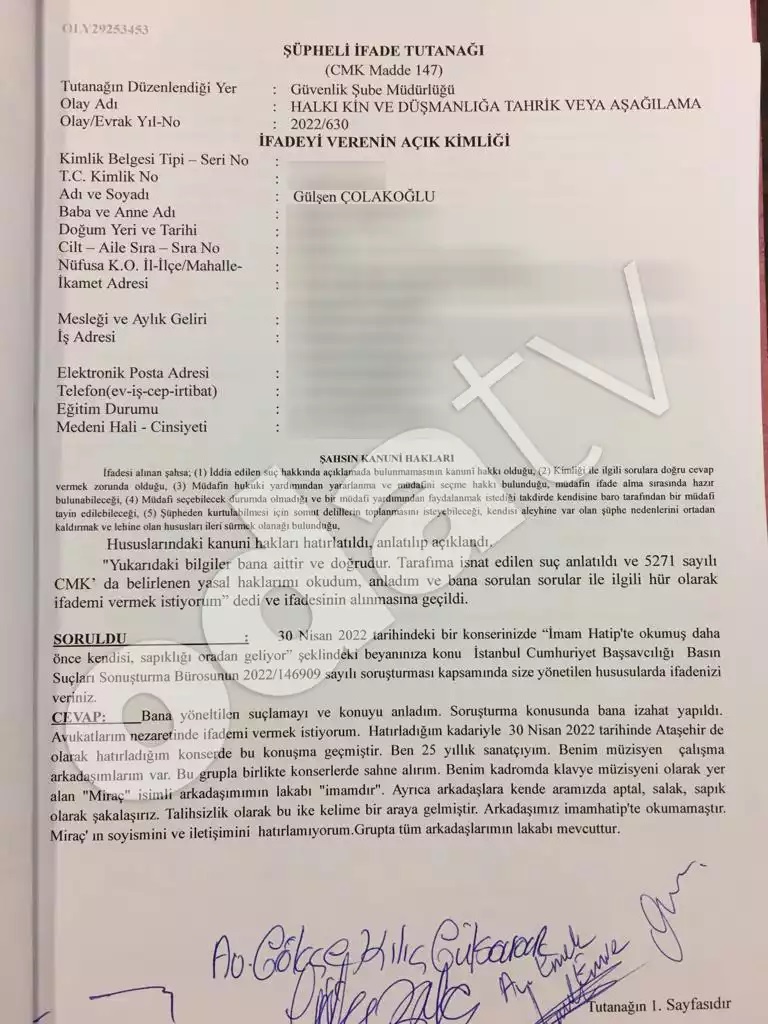 Gözaltına alınıp savcılığa ifade veren Gülşen’in emniyet ifadesine Odatv ulaştı. Ünlü şarkıcı ifadesinin ardından tutuklama istemiyle mahkemeye sevk edildi.