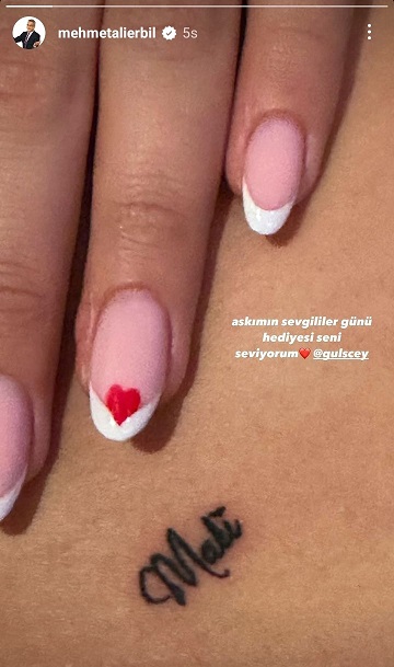 Ceylan'ın 'Mali' dövmesine Mehmet Ali Erbil "Aşkımın sevgililer günü hediyesi seni seviyorum" diyerek, Instagram'dan paylaştı.