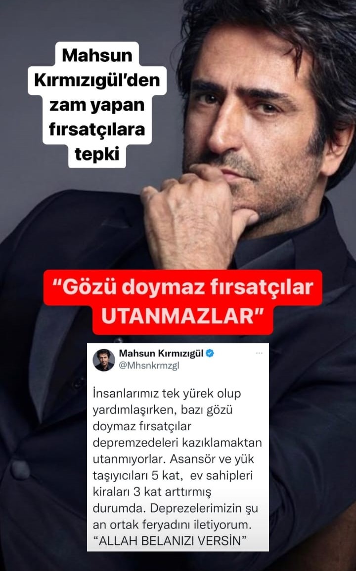 Sosyal medya hesabında dikkat çeken bir paylaşımda daha bulunan Kırmızıgül deprem fırsatçılarına isyan etti.