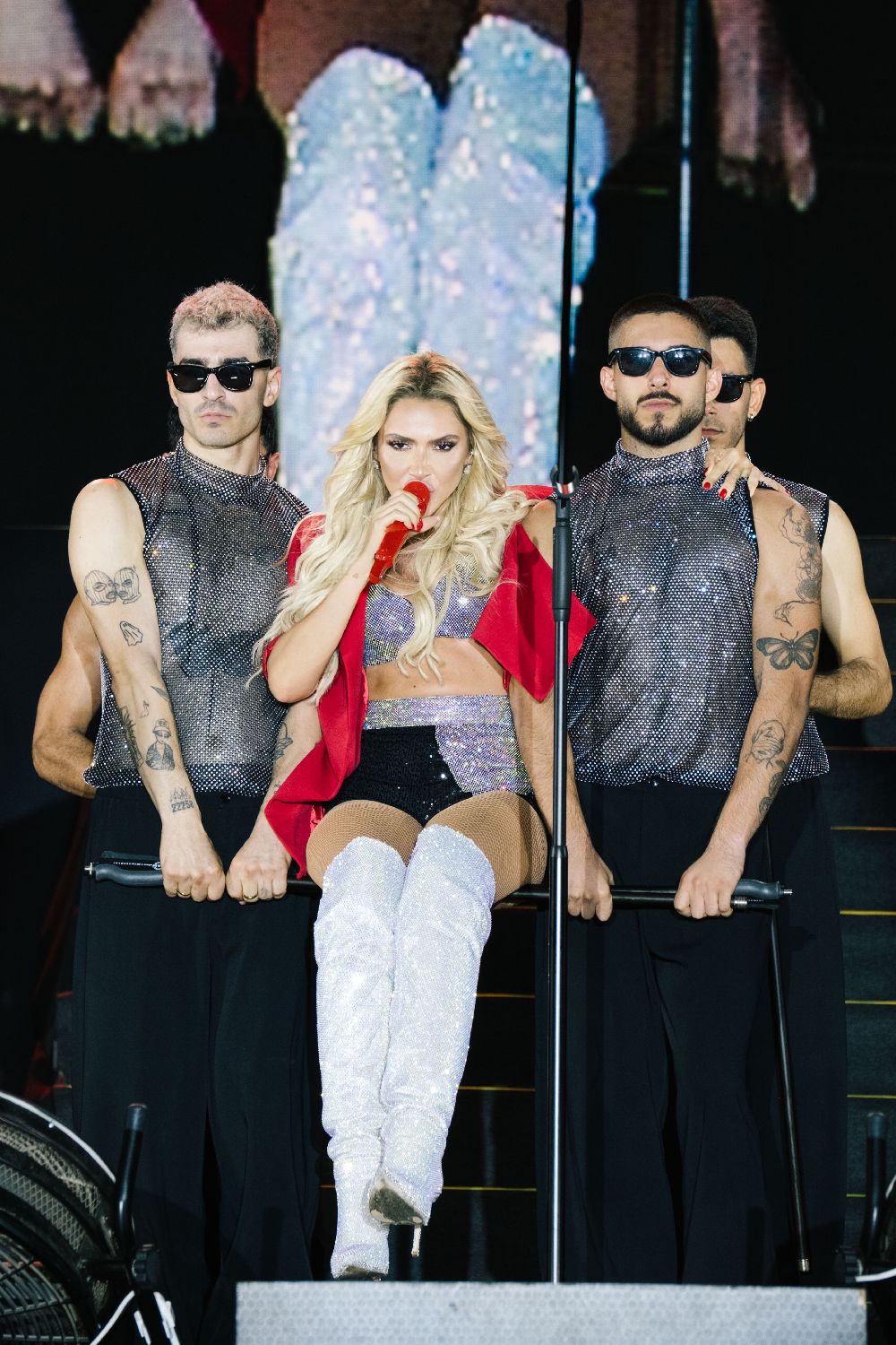 Ünlü sanatçı, 'Biz Buradayız' şarkısını seslendirdikten sonra ünlü iş insanı Hadise'ye destekleri için teşekkür ederek çiçek verdi.