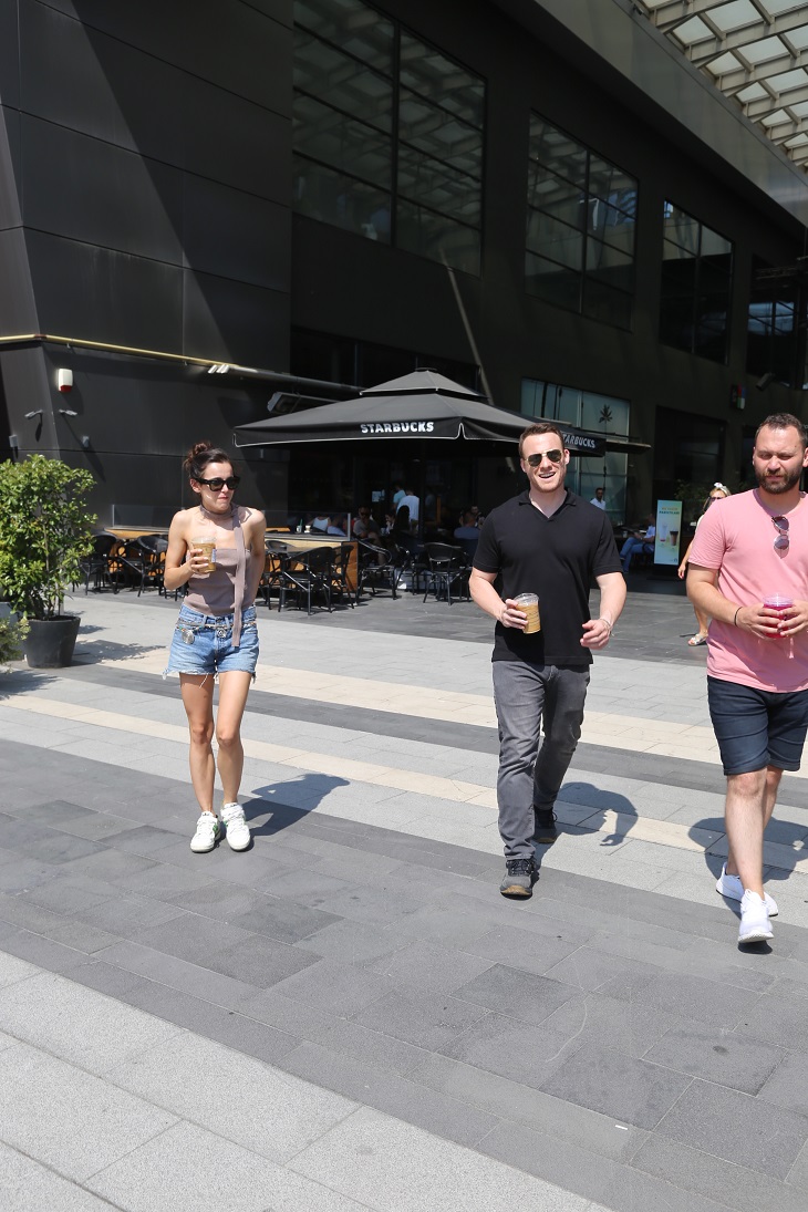 Kahve alma sırasında kendilerini fark edenlerin yoğun ilgi gösterdiği Bürsin ve Sancaktutan, fotoğraf isteklerini de geri çevirmeyerek kısa sürelide olsa sevenlerine zaman ayırdılar.