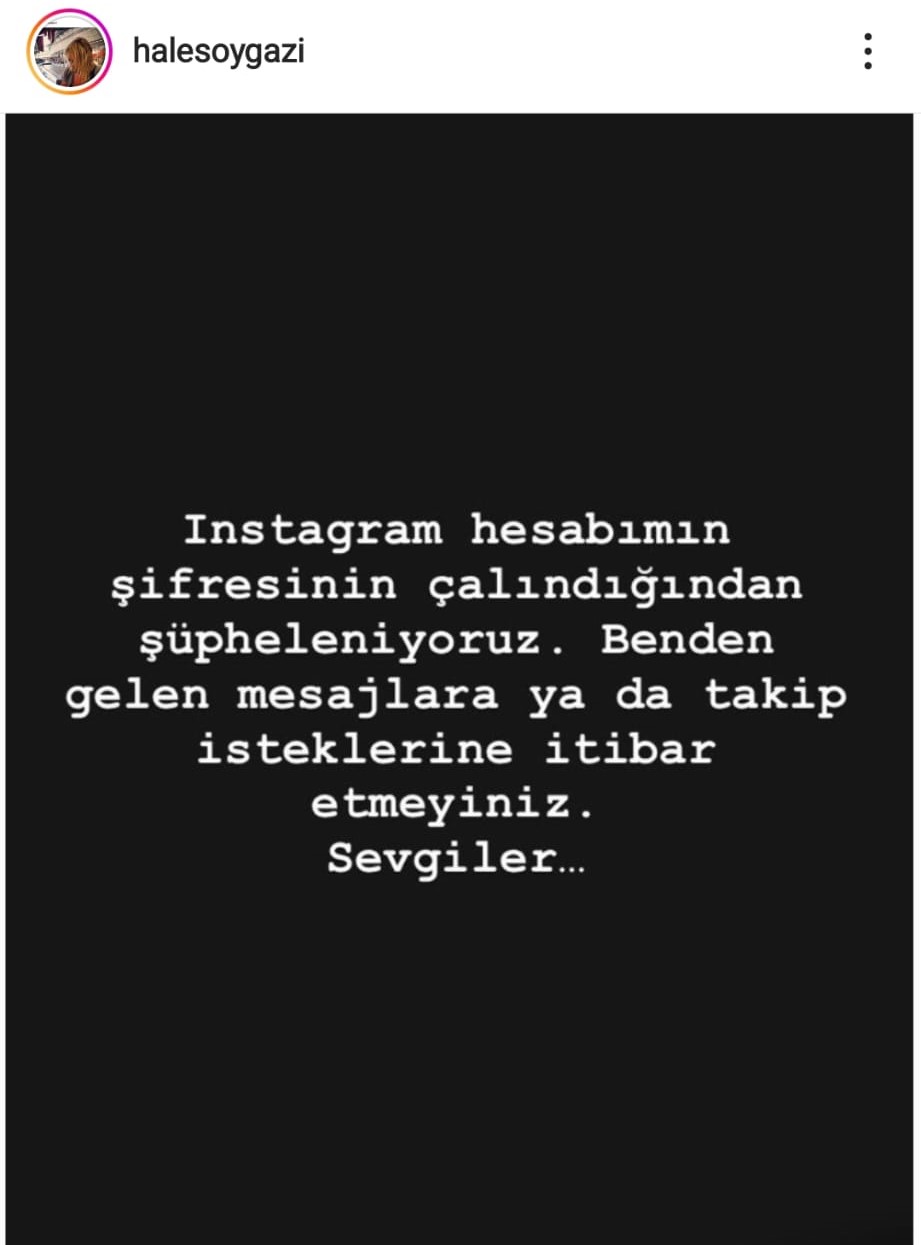 Soyagazi paylaşımında “Instagram hesabımın şifresinin çalındığından şüpheleniyoruz. Benden gelen mesajlara ya da takip isteklerine itibar etmeyiniz. Sevgiler” ifadelerini kullandı.