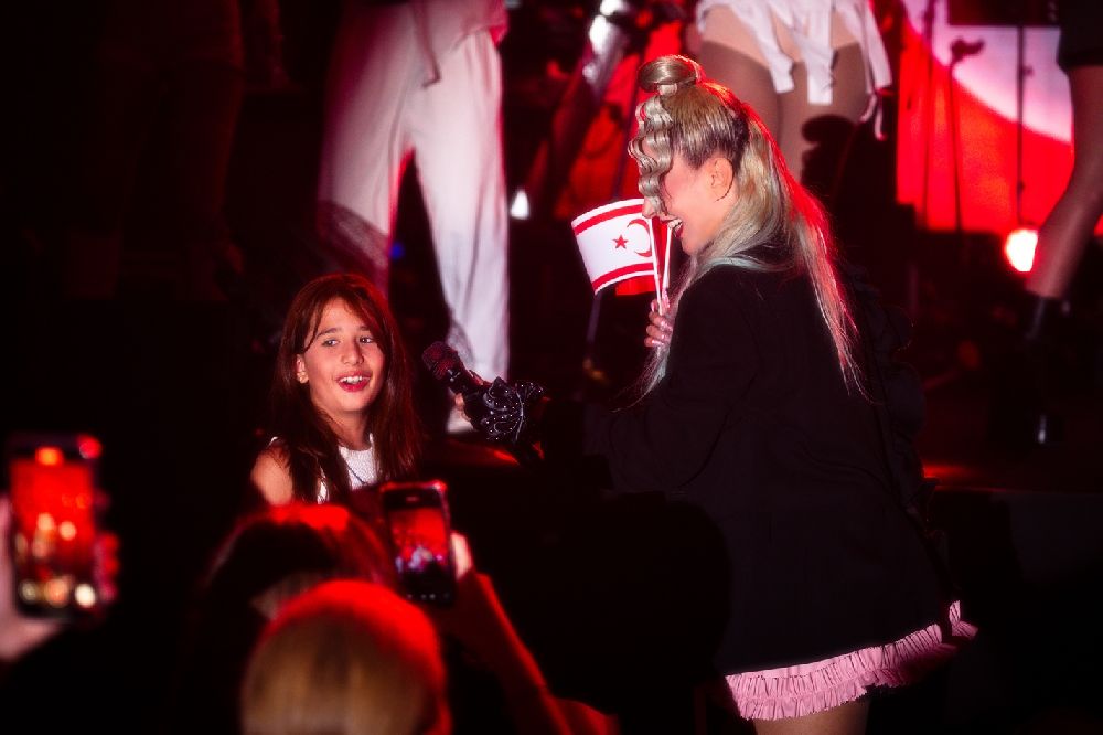 Kıbrıs Girne’de gerçekleşen konsere özel hazırlanan kostümüyle çıkan pop müziğin kraliçesi, yine özgün tarzını şıklıkla buluşturarak farkını ortaya koydu. Siyah ceketi, pembe gözlükleri, dikkat çeken aksesuarları ve saçından makyajına kadar her detayıyla Yener bu kez Kıbrıs semalarında ışıldadı.