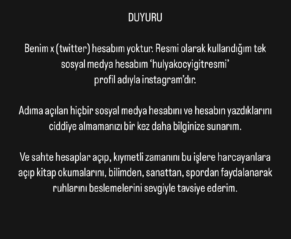 Koçyiğit, adına açılan fake hesaplarından yazılanların ciddiye alınmamasını istedi.