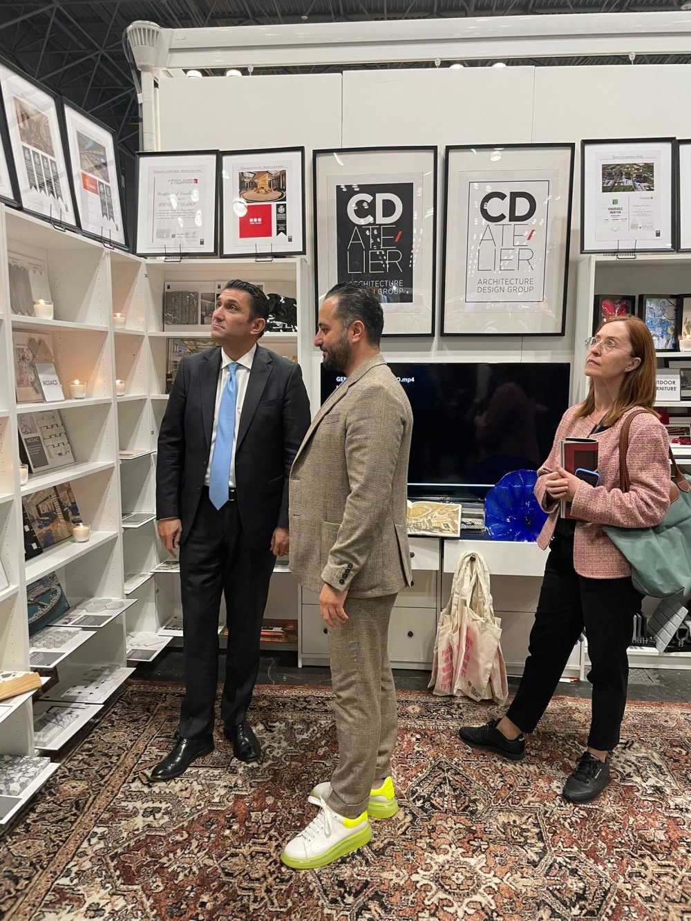 Türkiye'nin New York Başkonsolu Reyhan Öztürk ve çalışma ekibi, ödüllü İç Mimar Cüneyt Darı'nın standını ziyaret ederek bilgi aldılar. Konukları ile yakından ilgilenen Darı, sosyal medya hesabından yaptığı açıklamada şu ifadelere yer verdi: "New York fuarımızda yeni markamız olan CD Atelier'i ziyaret eden New York Başkonsolosu Reyhan Öztürk ve çalışma arkadaşlarına teşekkür ederim."